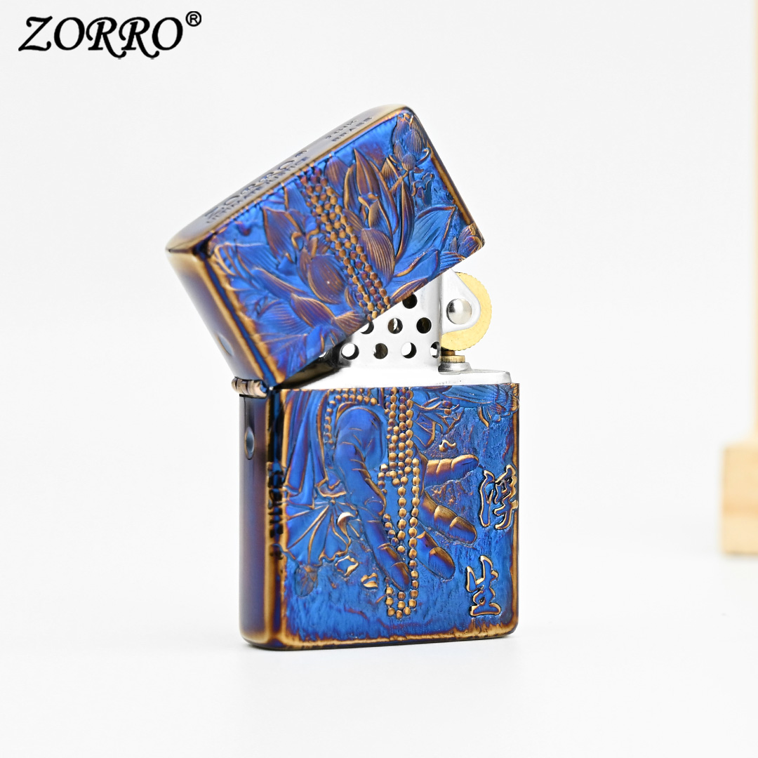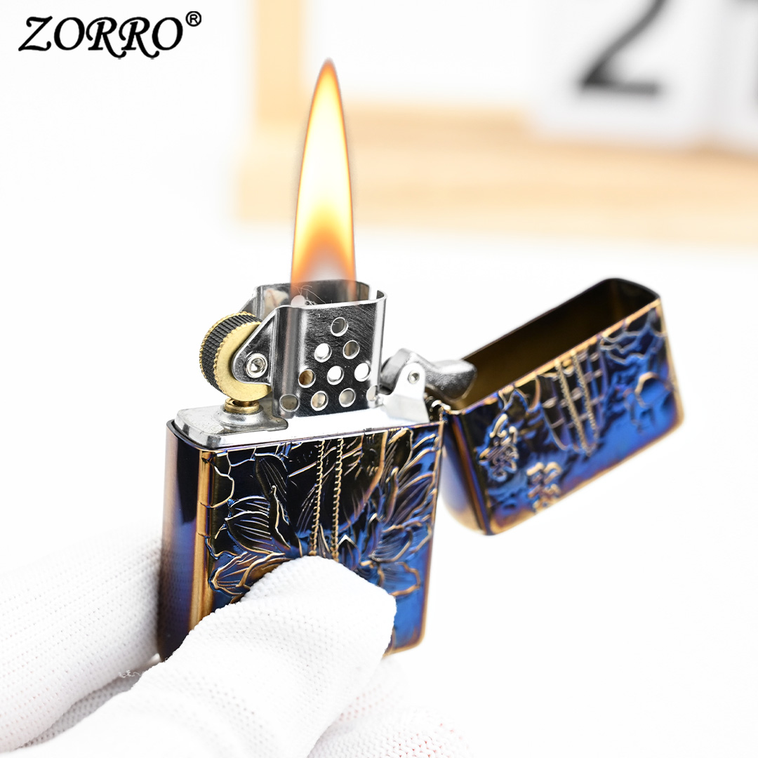 ZORRO佐罗煤油防风打火机905熏蓝浮生若梦精雕男士创意礼物