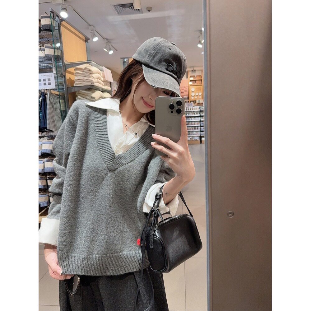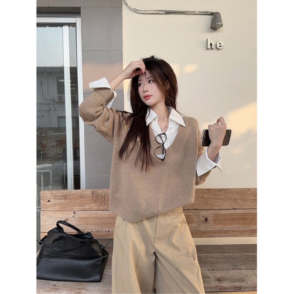 小众设计感假两件针织毛衣女2025秋冬款慵懒宽松休闲百搭韩系上衣