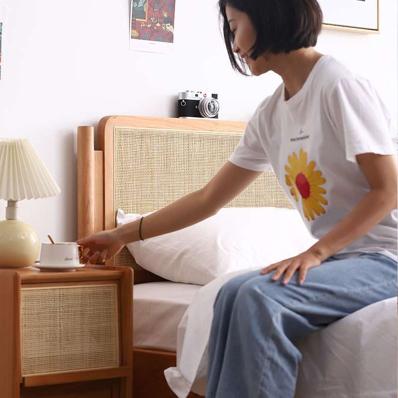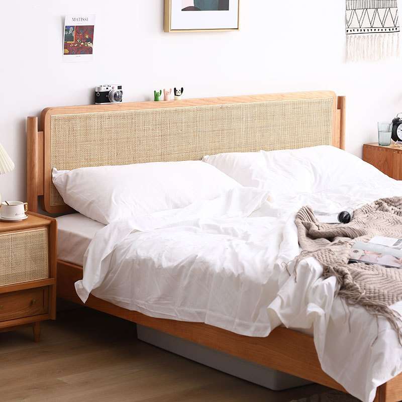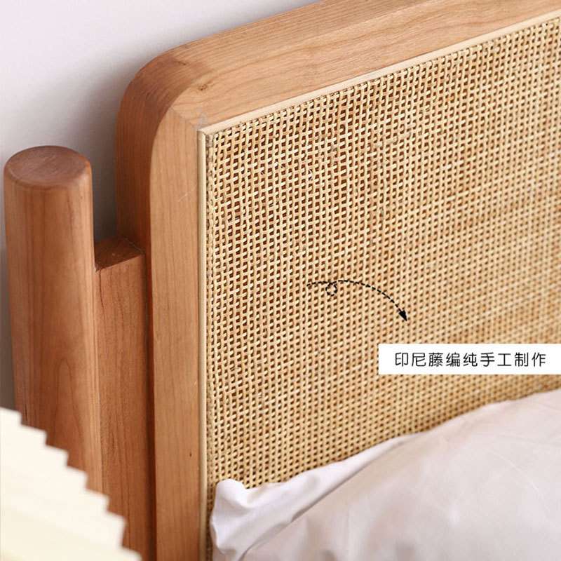 实木床1.8米1.5双人床主卧日式樱桃木复古美式北欧原木藤编床