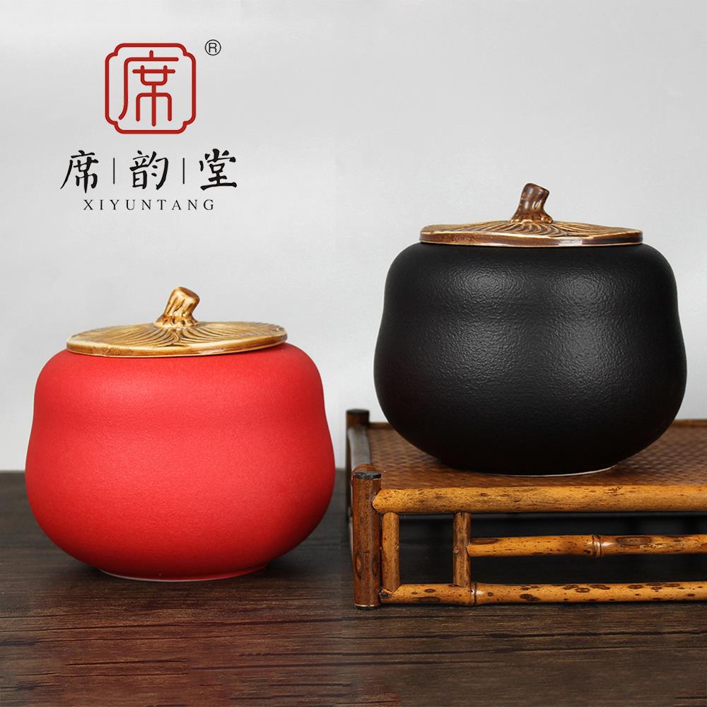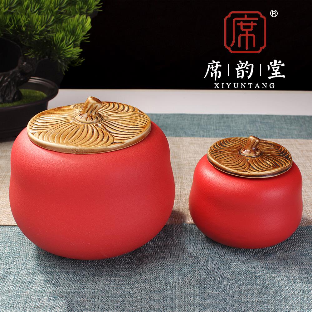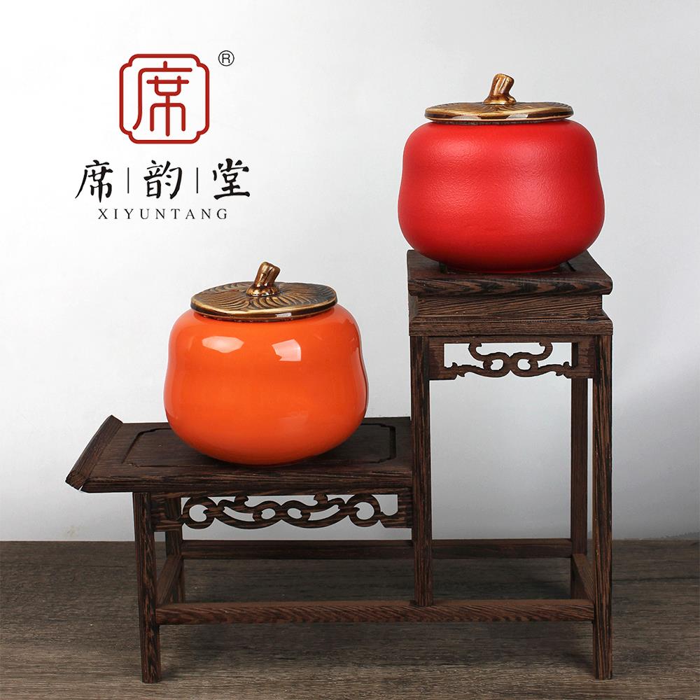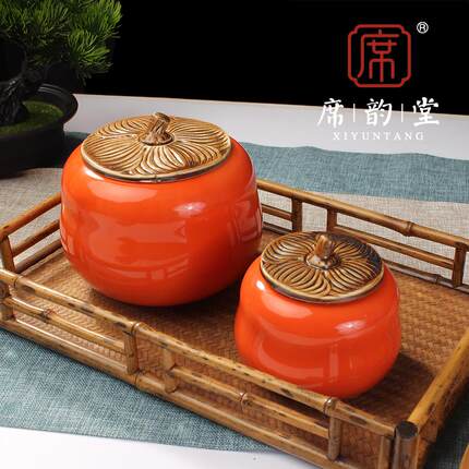 柿柿如意茶叶罐陶瓷储物罐防潮密封功夫茶道大号茶道配件茶罐