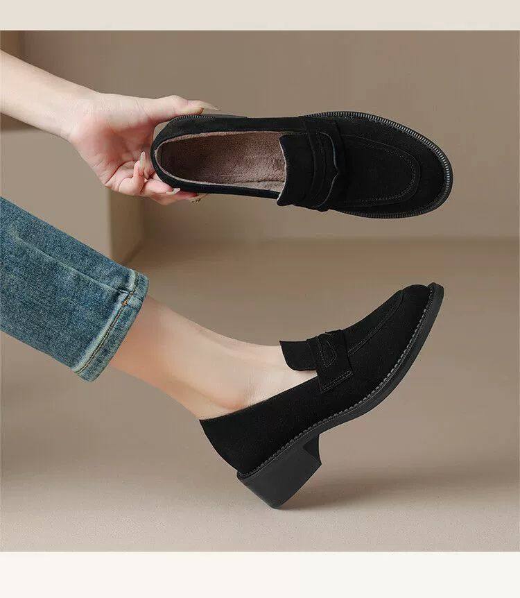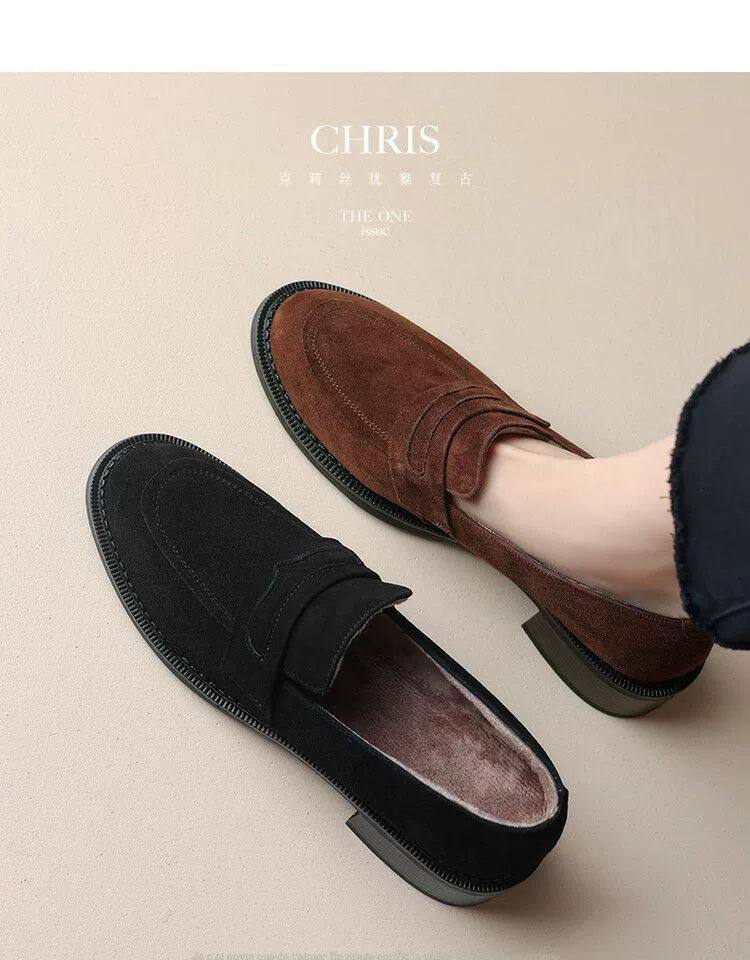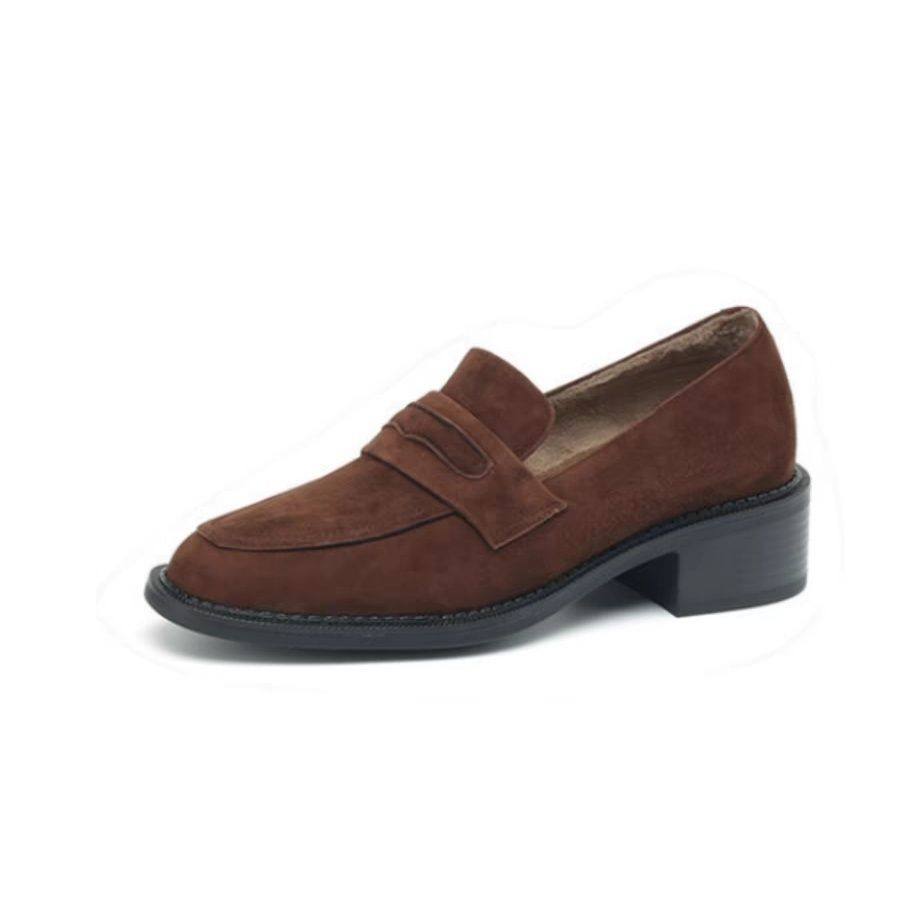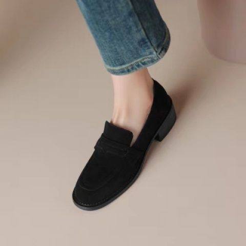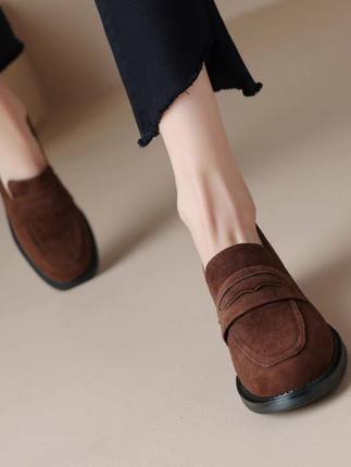 -K法式复古乐福鞋女软皮磨砂皮2025年新款中跟粗跟单鞋大码豆豆鞋