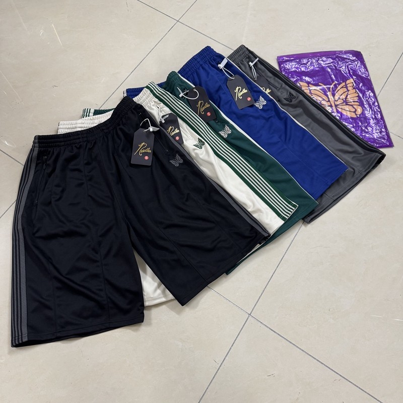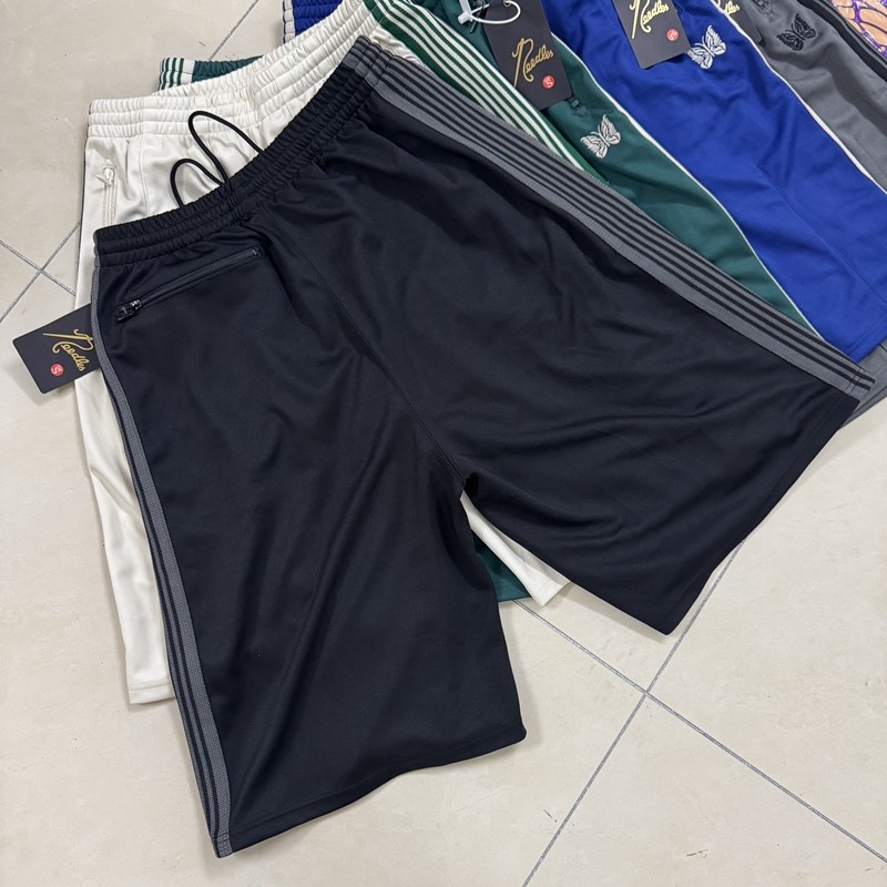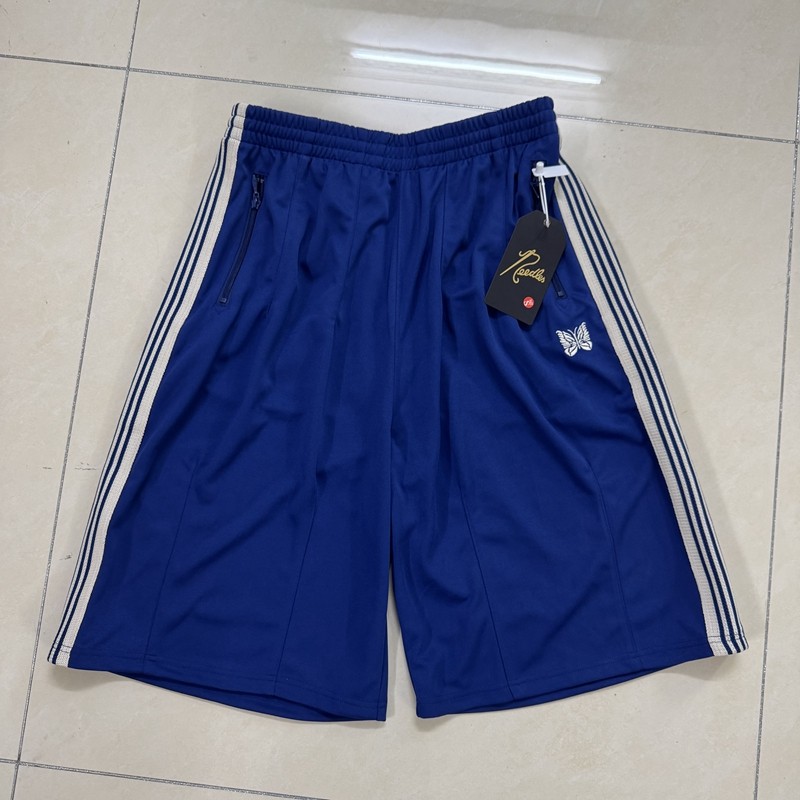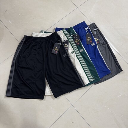 NEEDLES小众潮牌蝴蝶刺绣条纹宽松宽版运动休闲直筒七分短裤男女