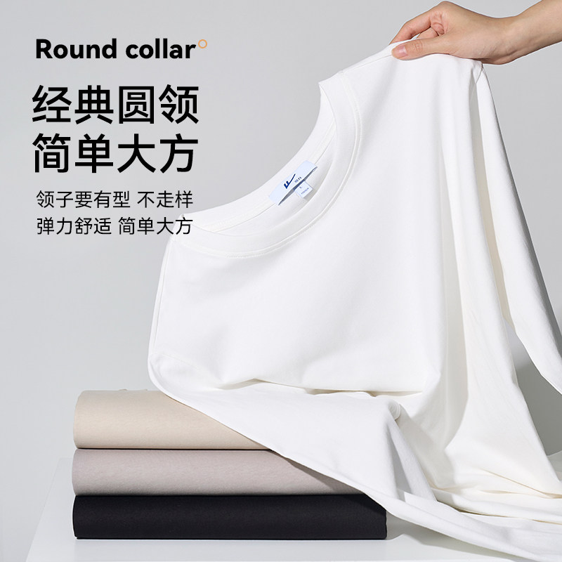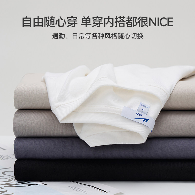 回力重磅长袖T恤男秋冬2026新款圆领纯棉内搭加绒白色打底衫男士