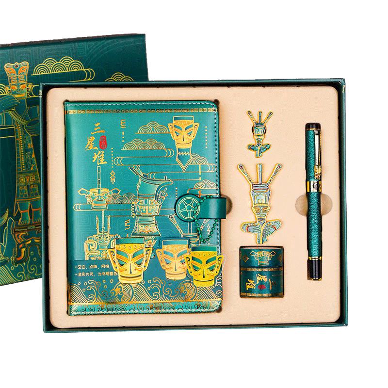 三星堆笔记本套装复古典彩页记事本书签徽章签字笔创意礼盒伴手礼