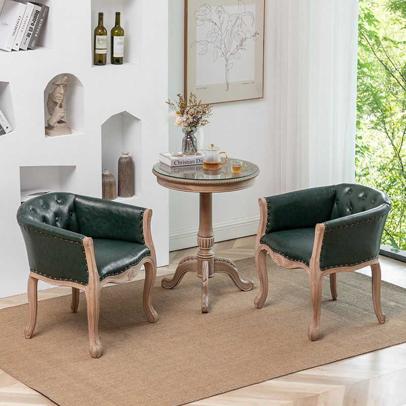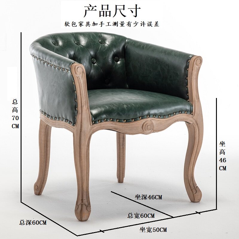 美欧式做旧家用扶手餐椅 复古实木围椅 木质软包洽谈阳台单人沙发