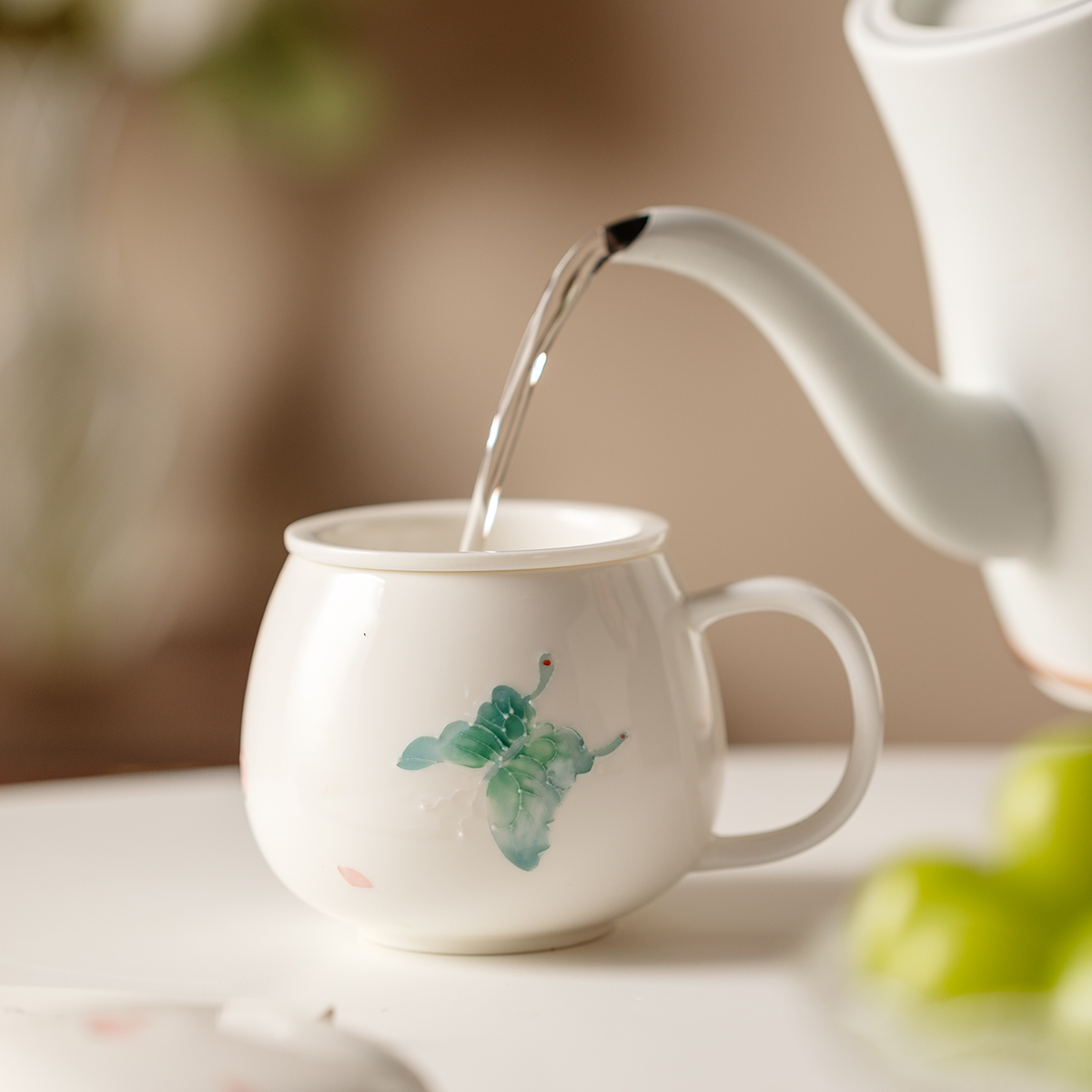 墨己2025新款玉泥蝶影泡茶杯家用陶瓷带过滤内胆茶水分离杯办公杯