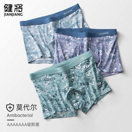 健将莫代尔男士内裤男四角男生印花抗菌宽松透气青年运动短裤衩头