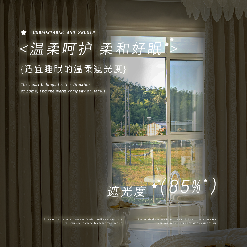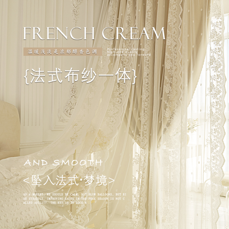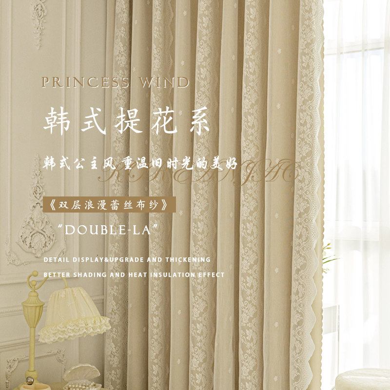 双层遮光窗帘纱布一体公主风法式奶茶色ins网红蕾丝纱挂钩式成品