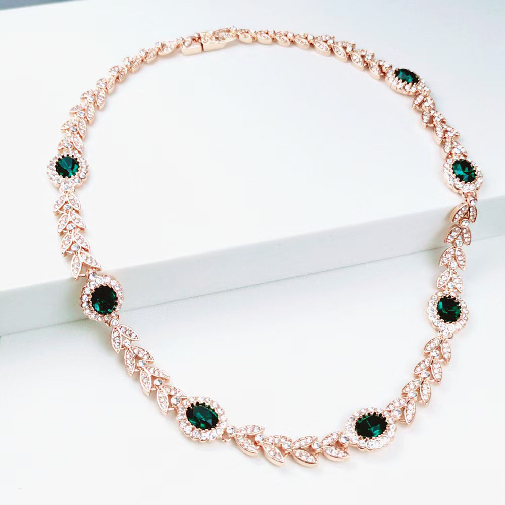 伊泰莲娜高贵典雅经典祖母绿宝石水晶项链 女 情人节爆款礼物