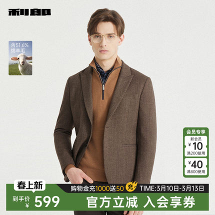 【含绵羊毛】利郎官方 休闲西服男春秋款新款商务男装单西外套
