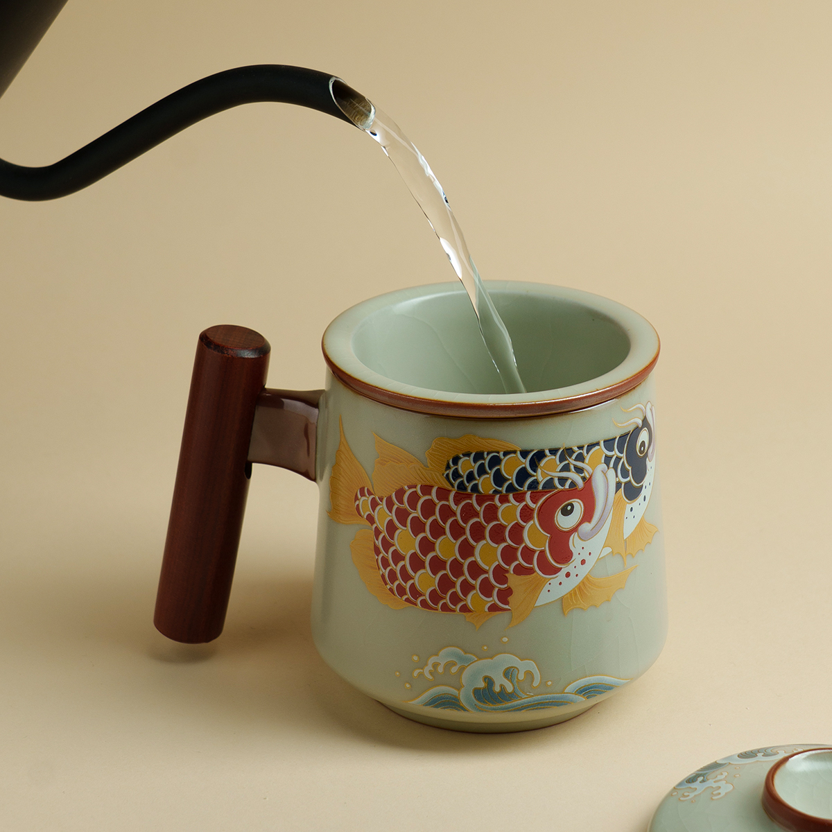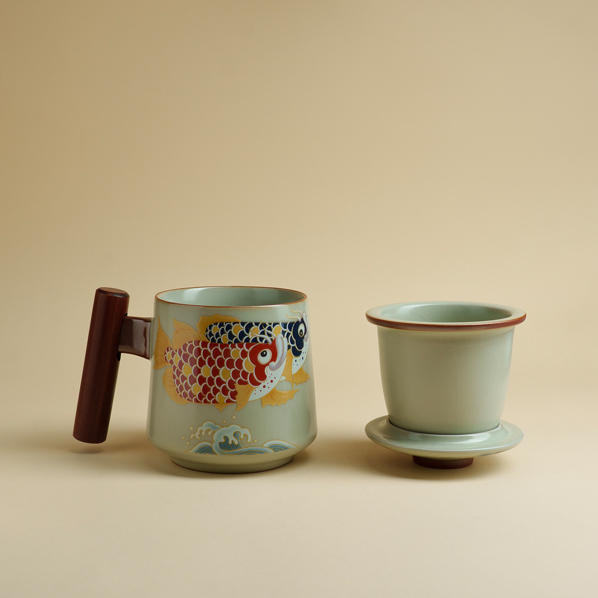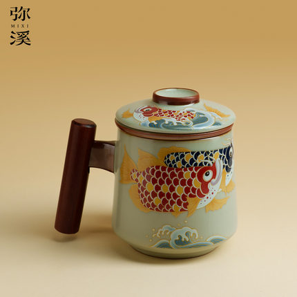 弥溪汝窑金玉满堂办公杯家用费陶瓷个人杯高档泡茶杯手工茶具水杯