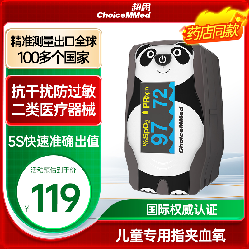 超思choicemmed儿童血氧仪医用级婴儿宝宝手指夹式脉搏心率检测仪