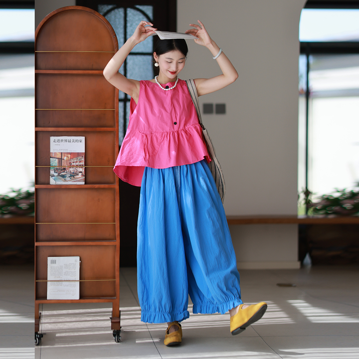 墨黛原创女装2025秋季新品松紧腰棉麻文艺气质灯笼裤阔腿休闲裤