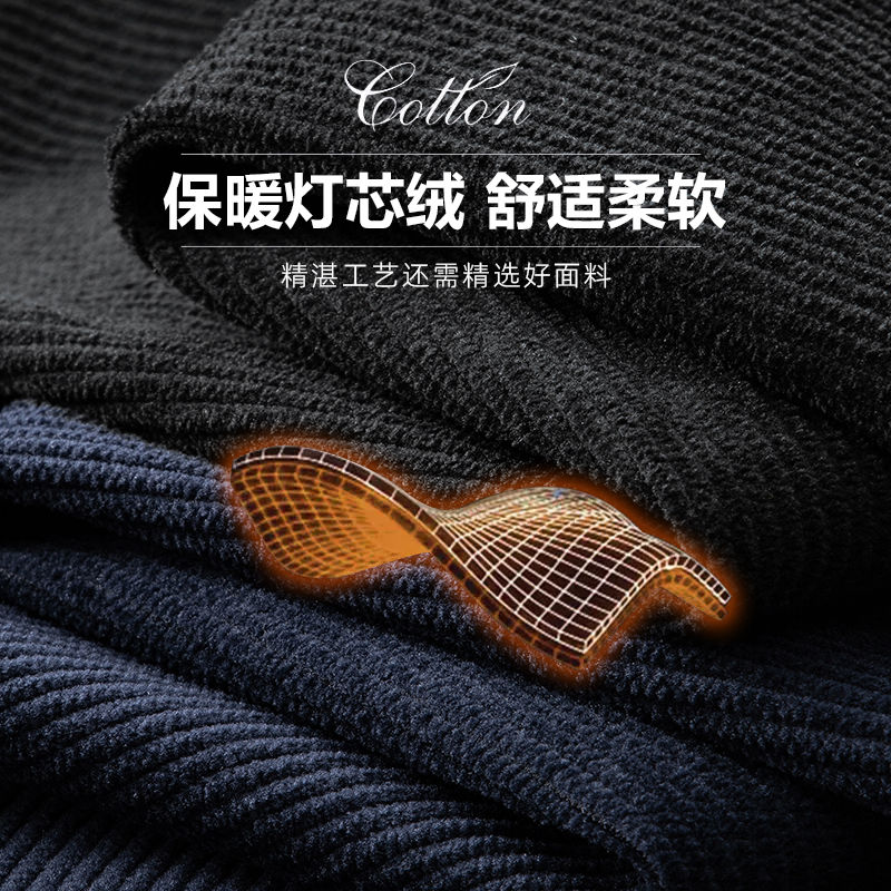 秋冬季加绒厚运动裤子男款直筒大码卫裤灯芯绒中年休闲长裤宽松潮