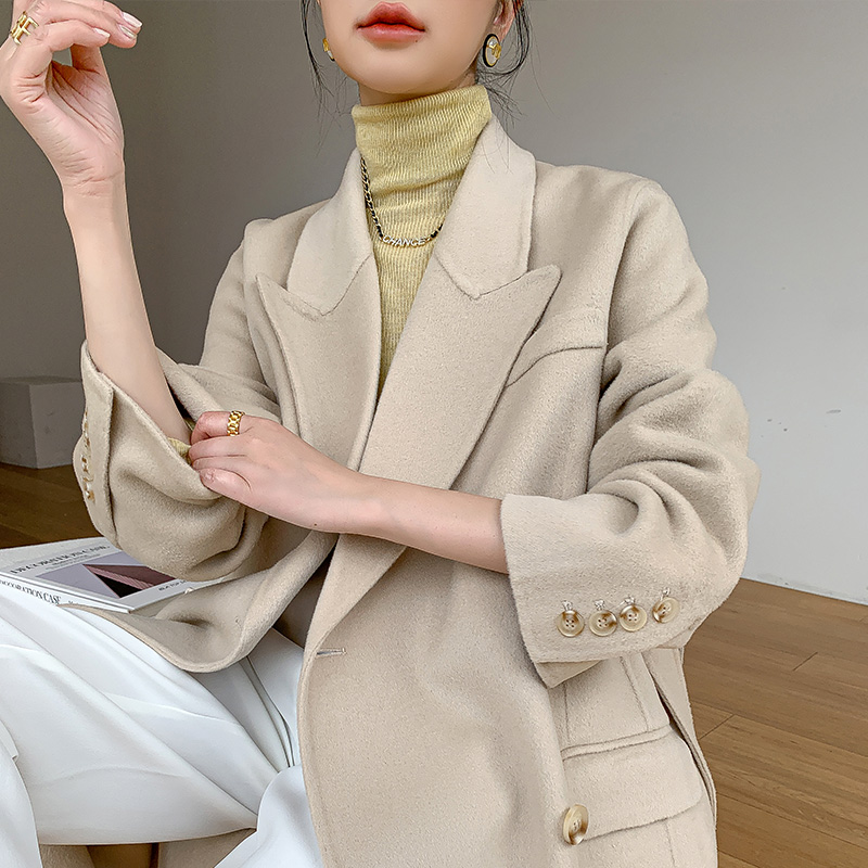 京绒羊2025秋冬100%羊毛双面呢大衣女士时尚宽松显瘦气质毛呢外套