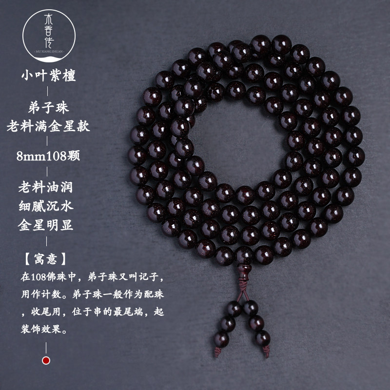 正宗老料小叶紫檀手串满金星檀香木质文玩佛珠男108颗手链女念珠