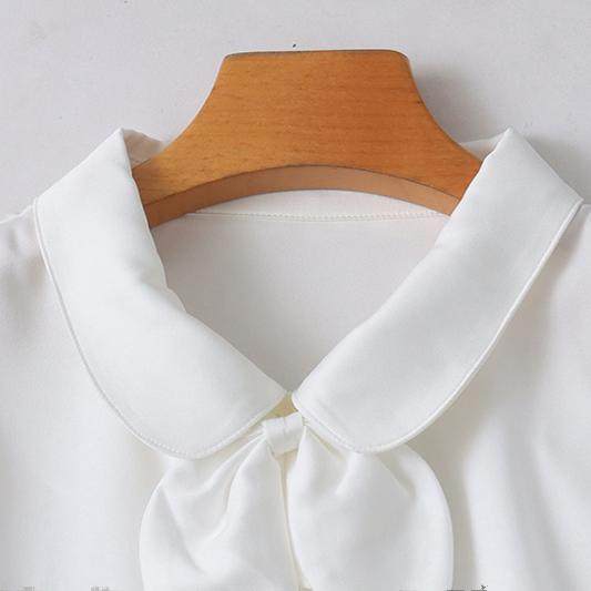 长袖娃娃领衬衫 春秋新款百搭显瘦纯色衬衣女士系带甜美上衣04292
