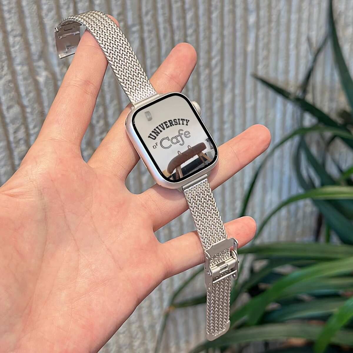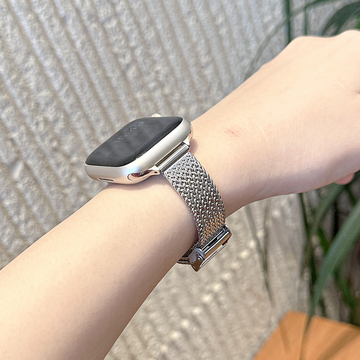 适用AppleWatchS11麦穗表带卡扣不锈钢苹果手表S10表带iwatch新金属9/87高级感米兰尼斯小蛮腰细款SE女款腕带