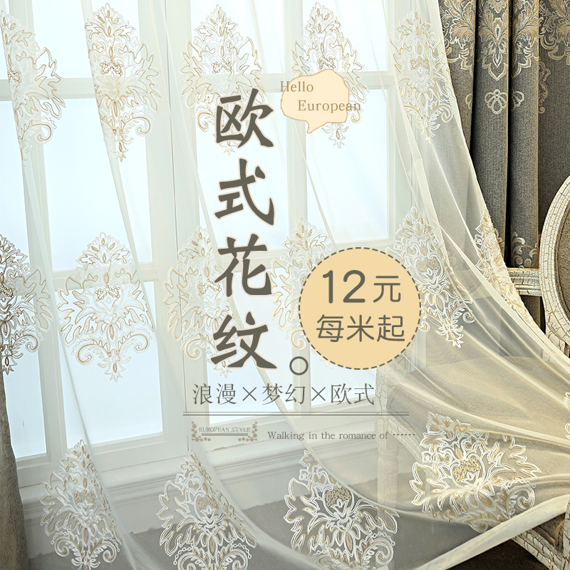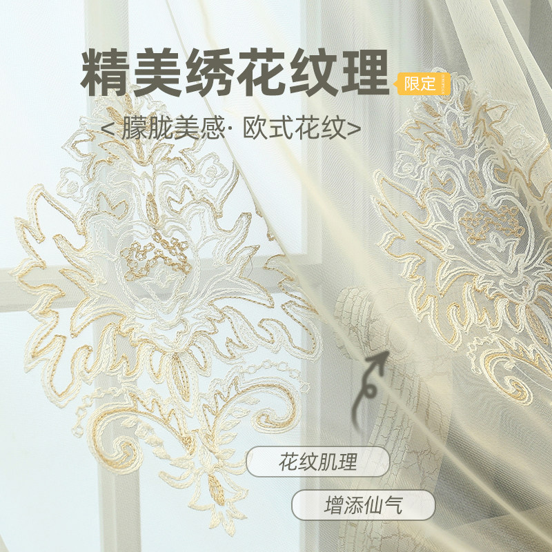 装饰绣花便宜窗纱透光白纱帘简约现代窗帘沙客厅卧室飘窗阳台成品