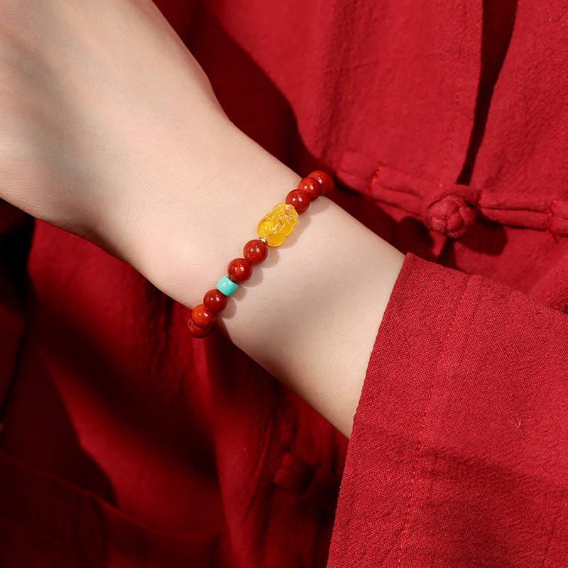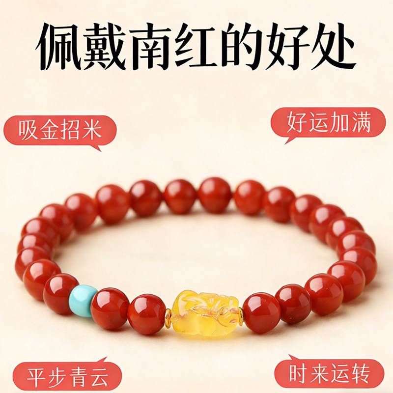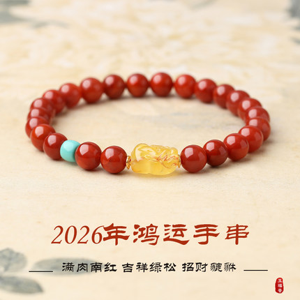 保山南红手串天然原矿满肉红玛瑙男女款手链蜜蜡宝石马年招财貔貅