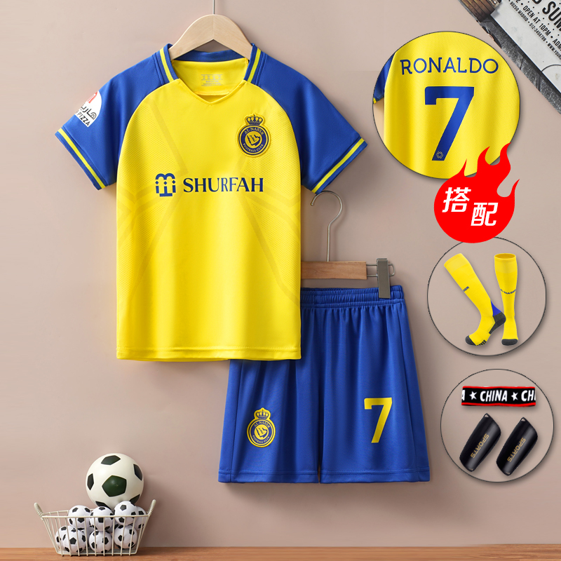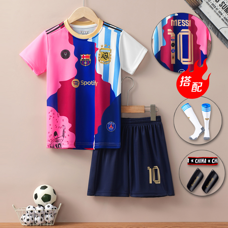 皇马C罗球衣儿童足球服套装短袖男女学生阿根廷梅西速干训练队服