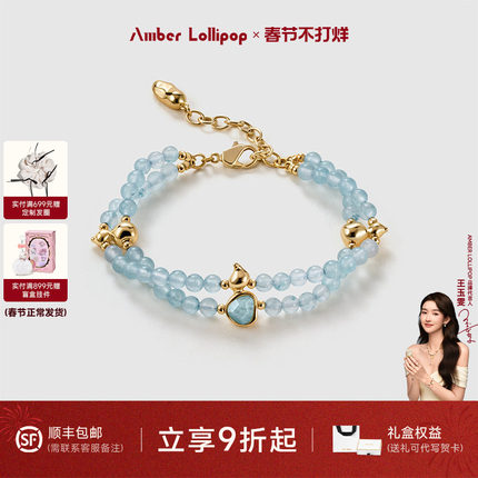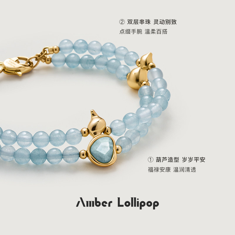 Amber Lollipop海蓝宝手链女双层叠戴宝石手串爆款配饰 葫系列