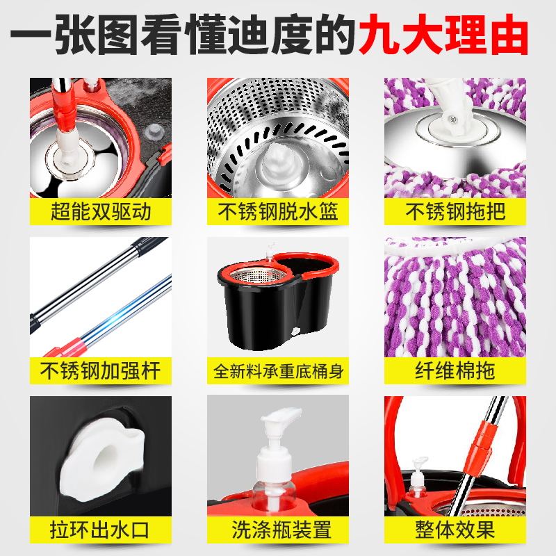 拖把杆旋转通用式免手洗懒人家用一拖地干湿两用挤水桶拖布墩布净
