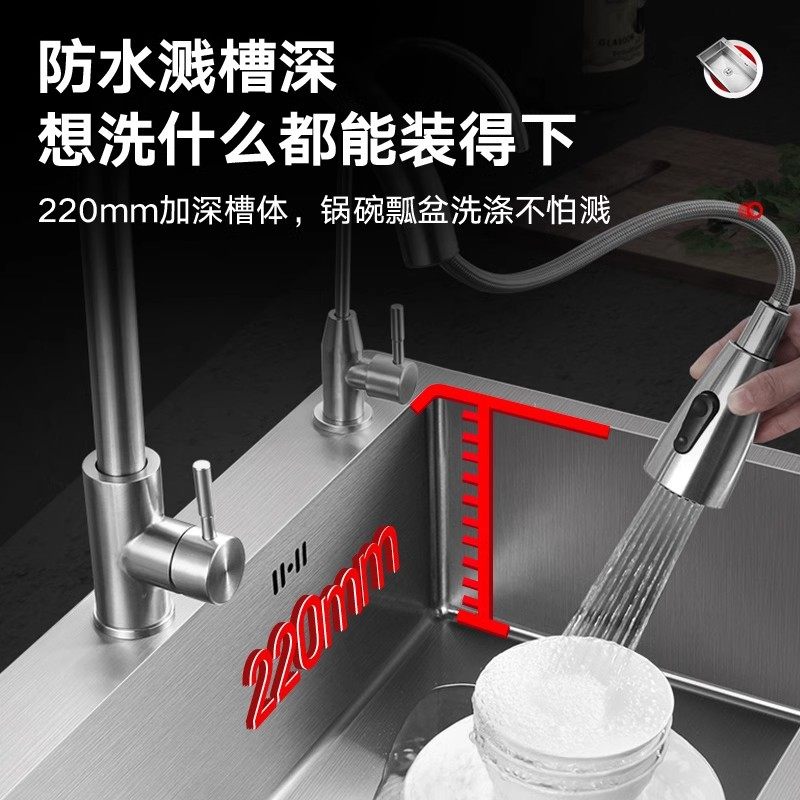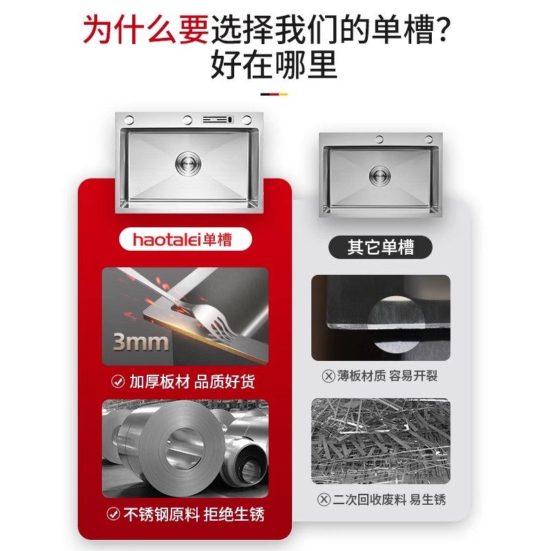 德国进口304不锈钢手工拉丝水槽厨房大单槽加厚洗菜盆全套一整套