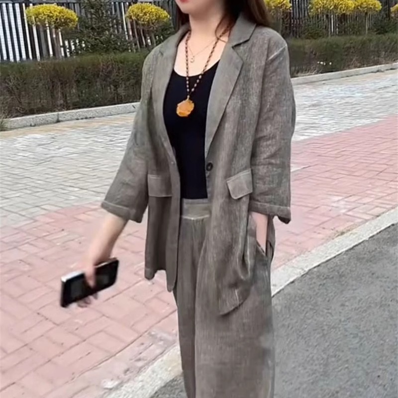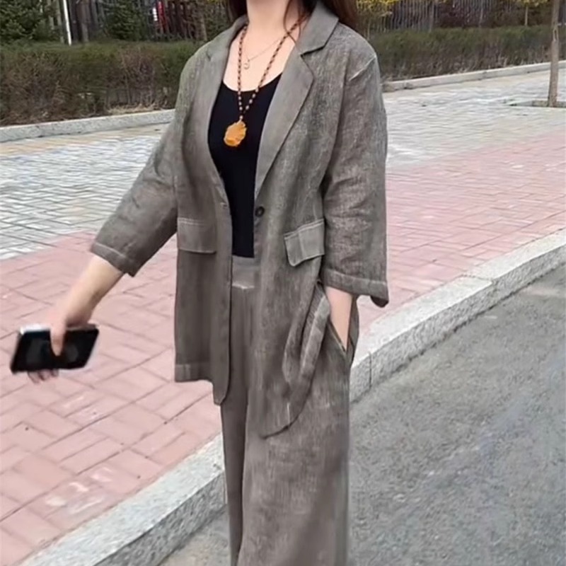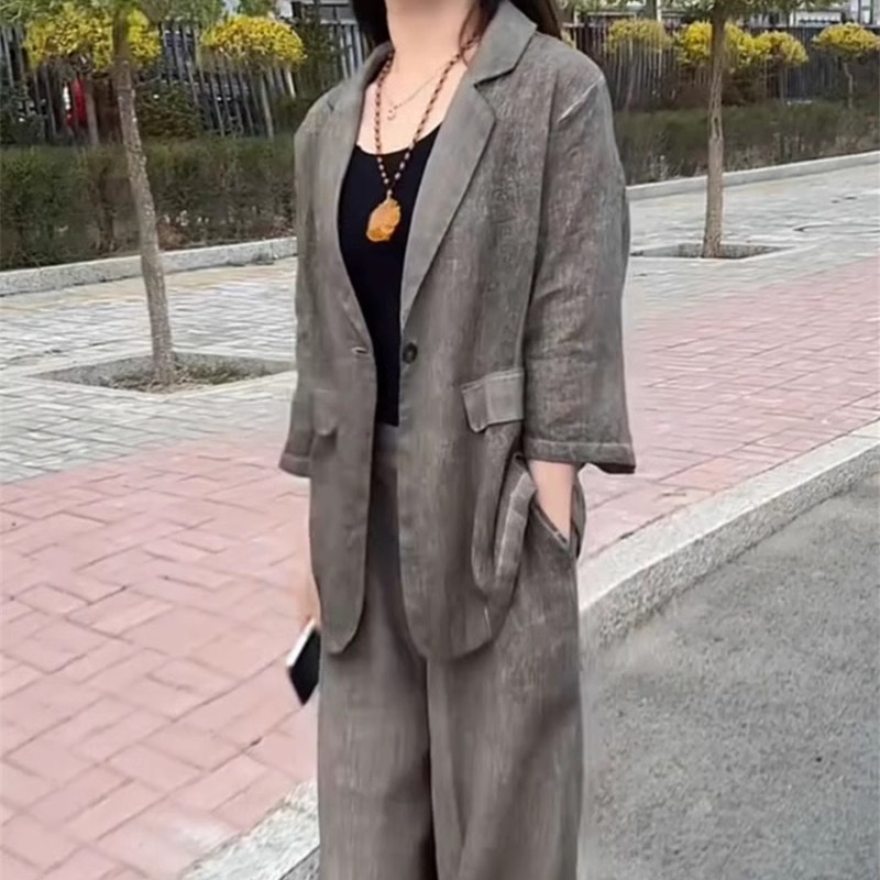 网红爆款简约轻熟风气质春季新款西服两件套宽松外套搭配阔腿裤女