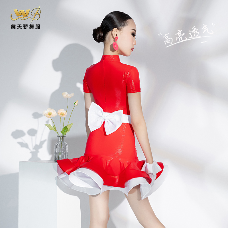 专业透气高亮少儿拉丁舞服装儿童半身裙专业练功比赛裙子规定服装