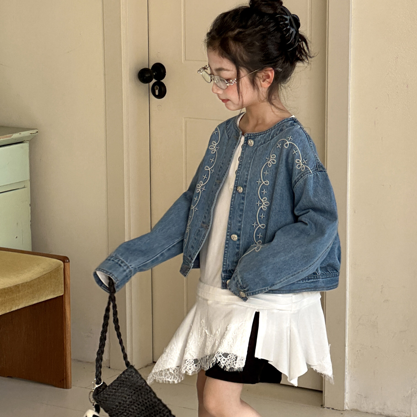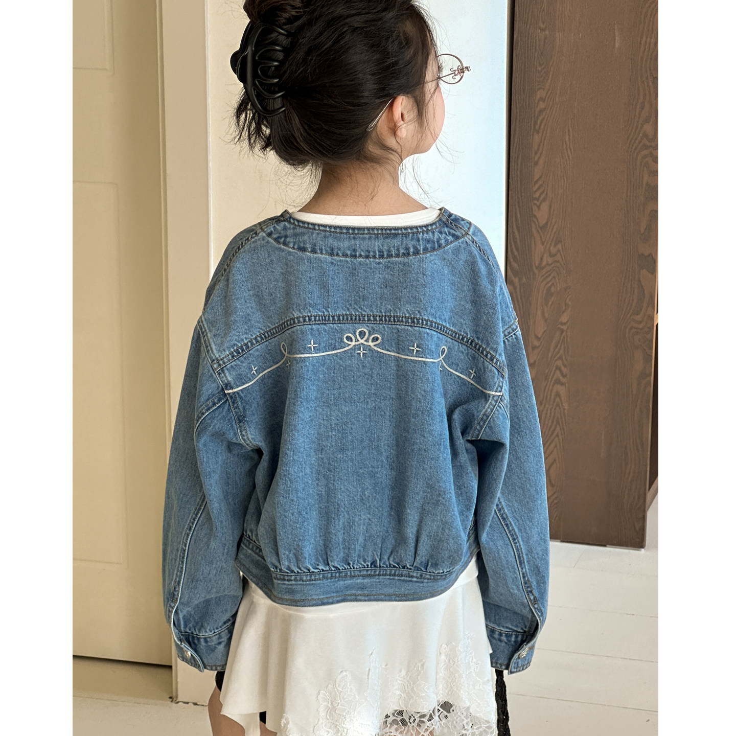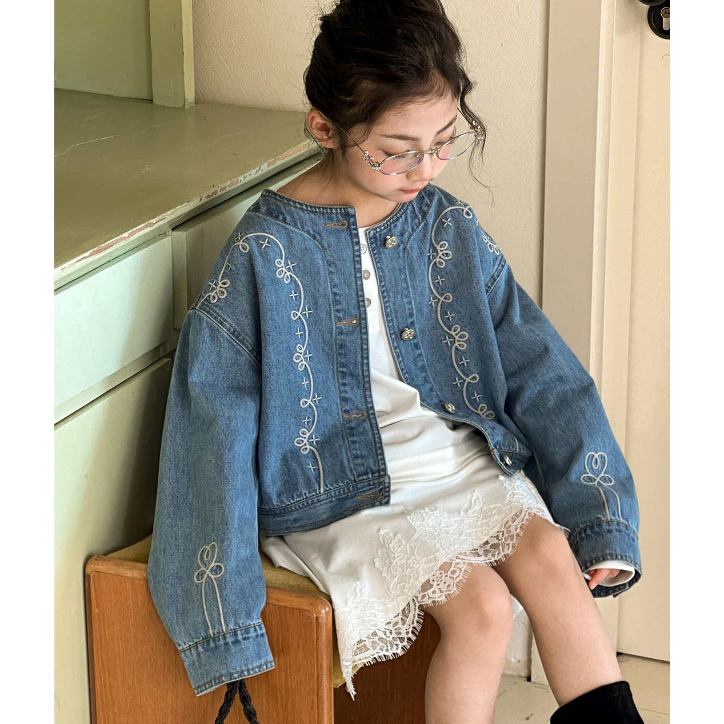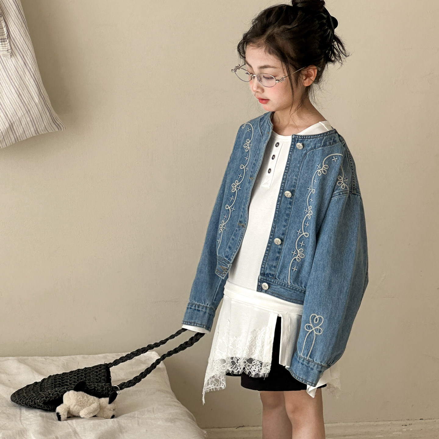 女童短款牛仔外套春秋款2026新款女大童超好看刺绣上衣初中生春装