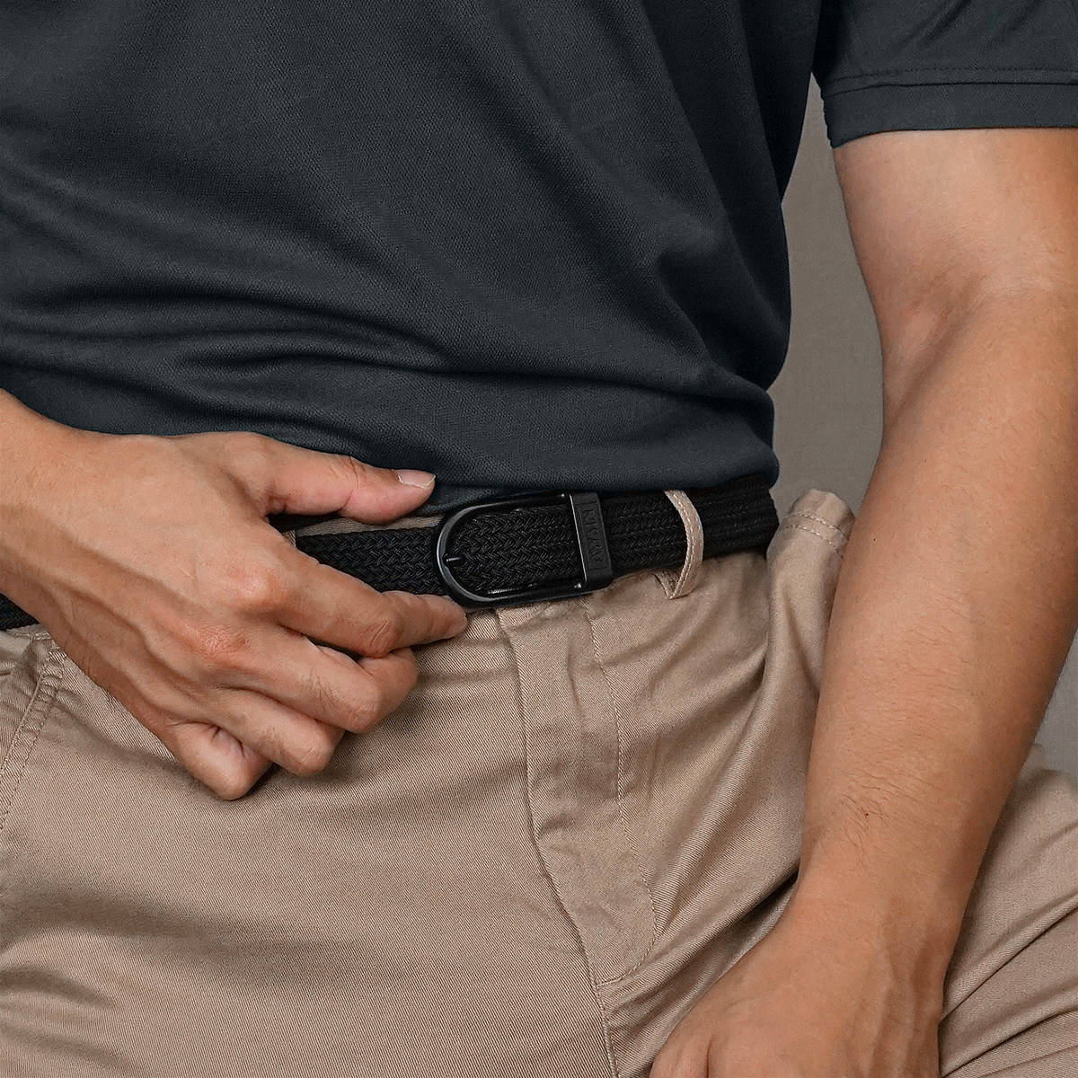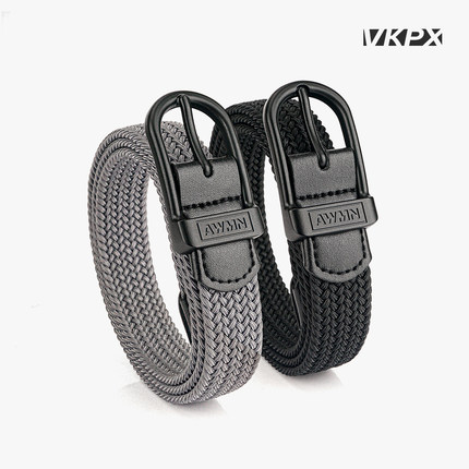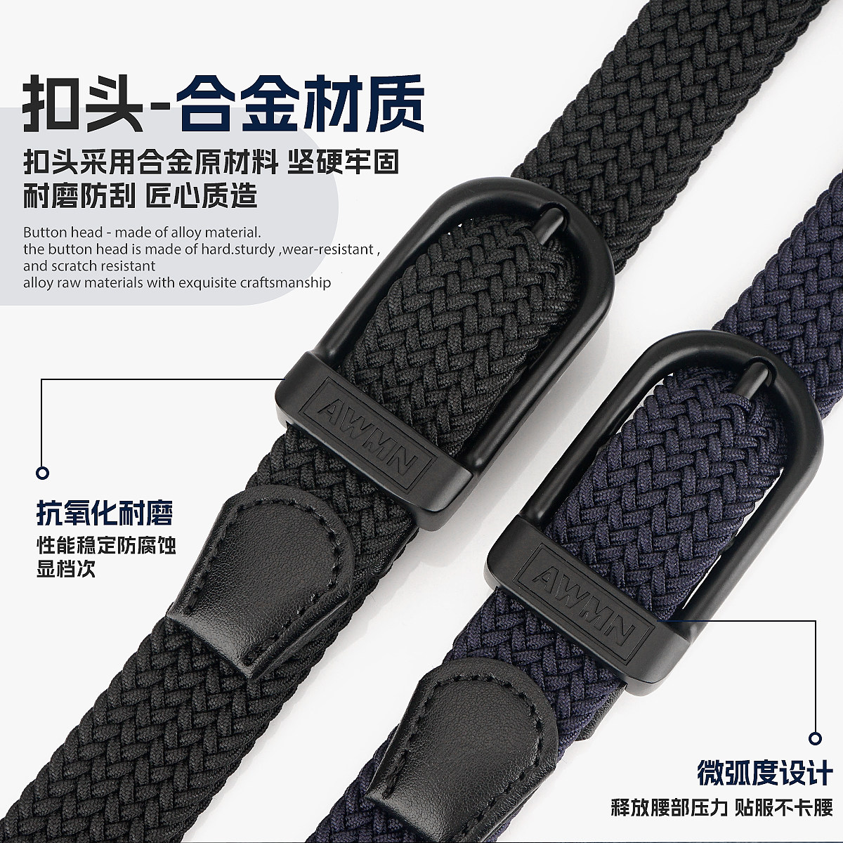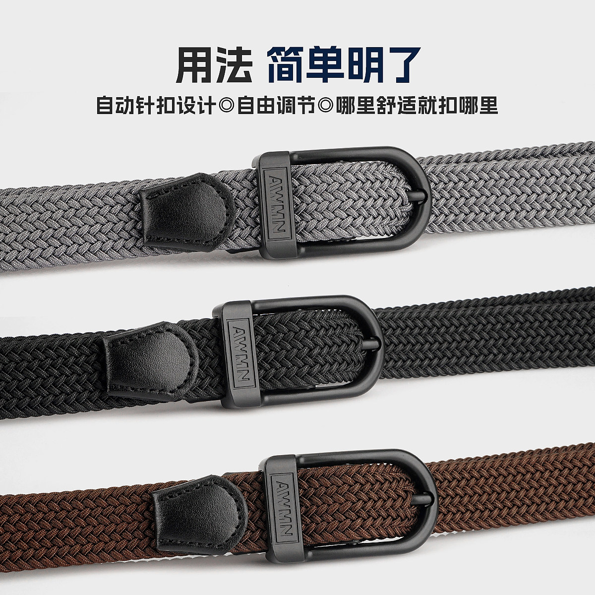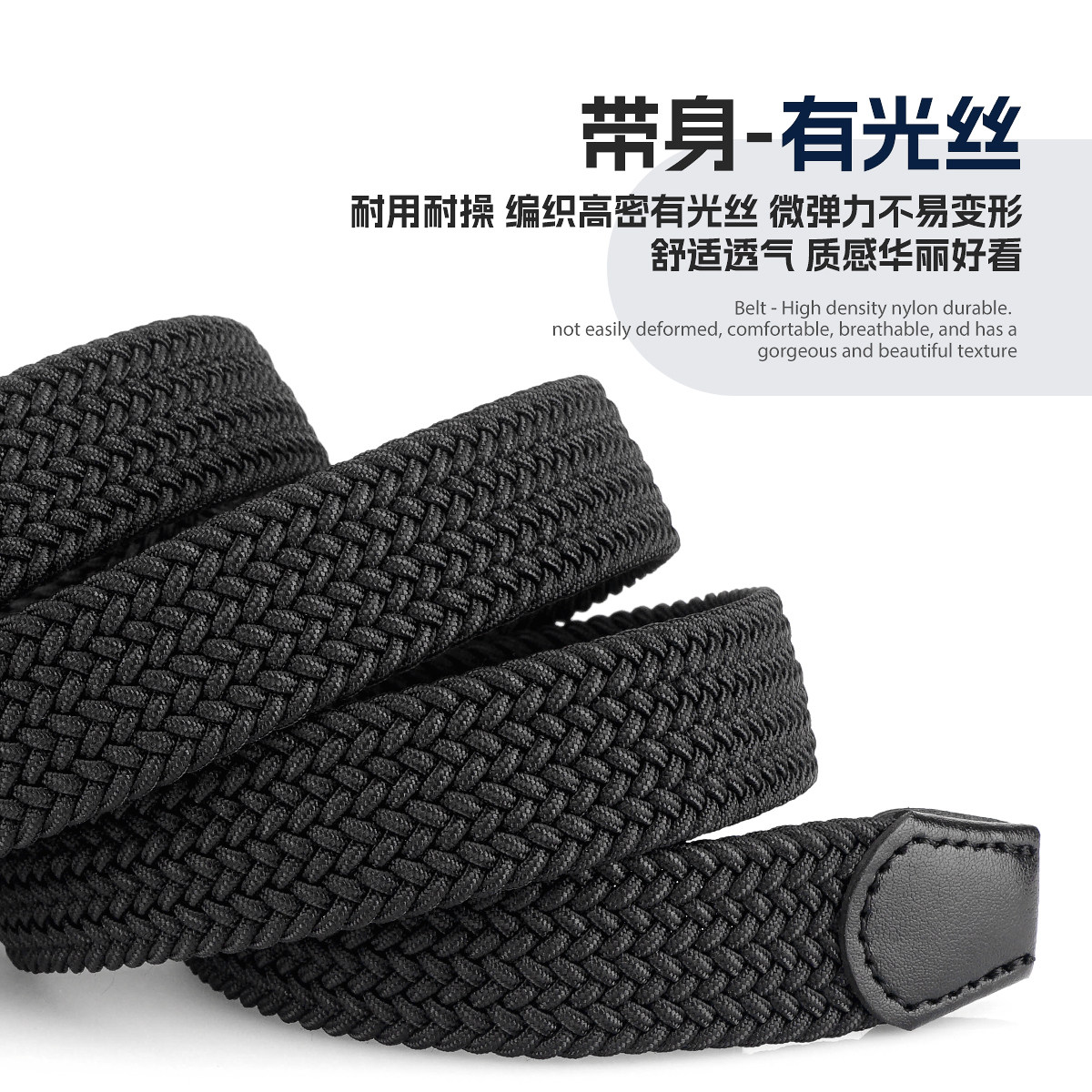 2.5cm编织微弹自动调松紧长短针扣腰带男女同款休闲有光丝皮带