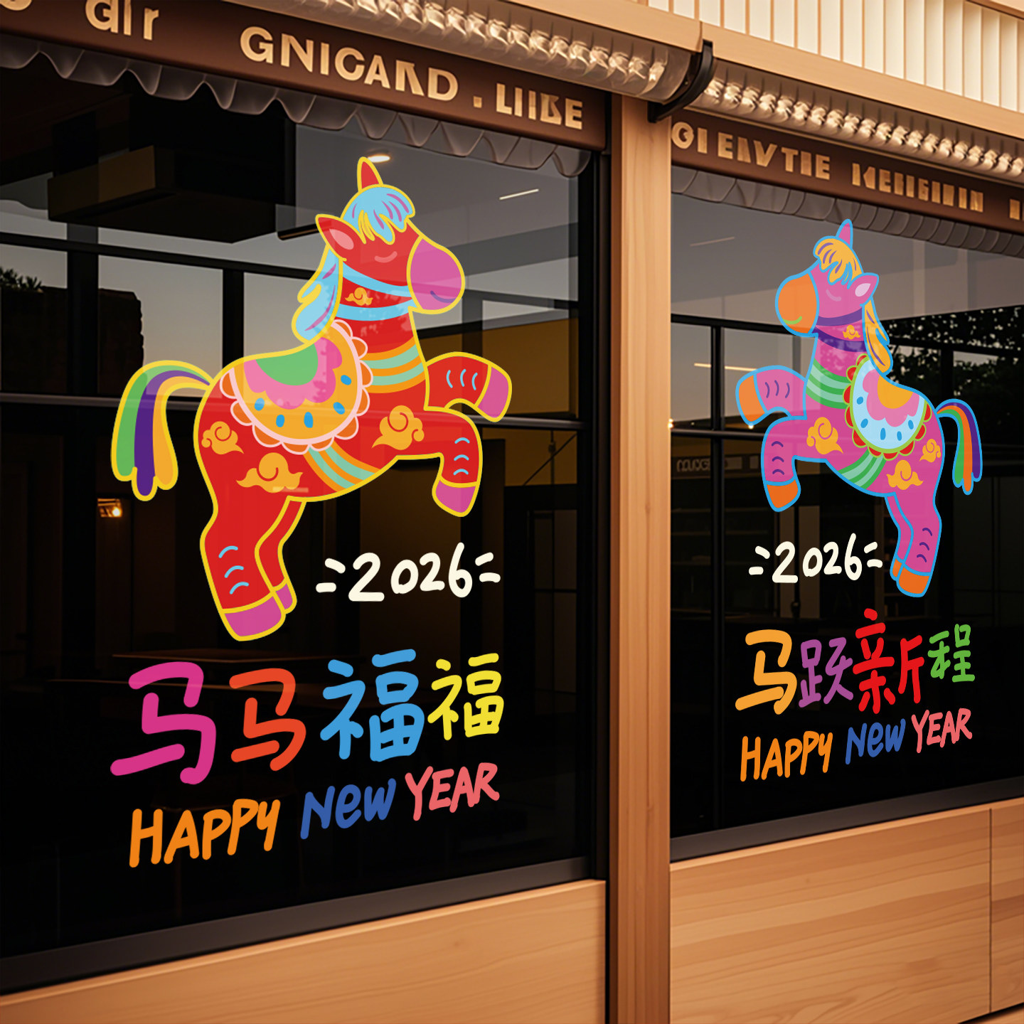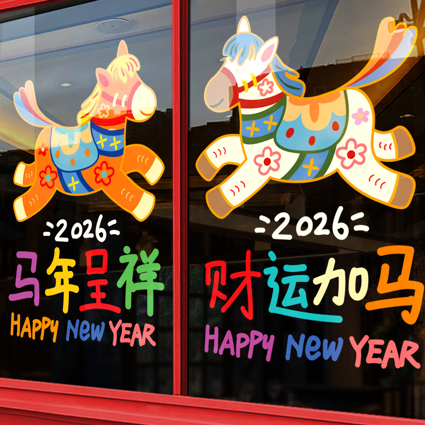 新年装饰窗花静电玻璃贴纸春节2026马年门贴窗贴场景布置公司店铺