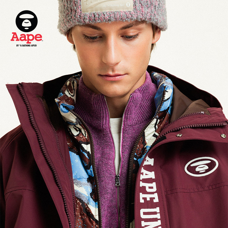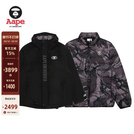 Aape旗舰店男装秋冬可拆卸内胆迷彩潮流红色羽绒服两件套7735XXP