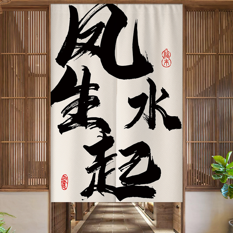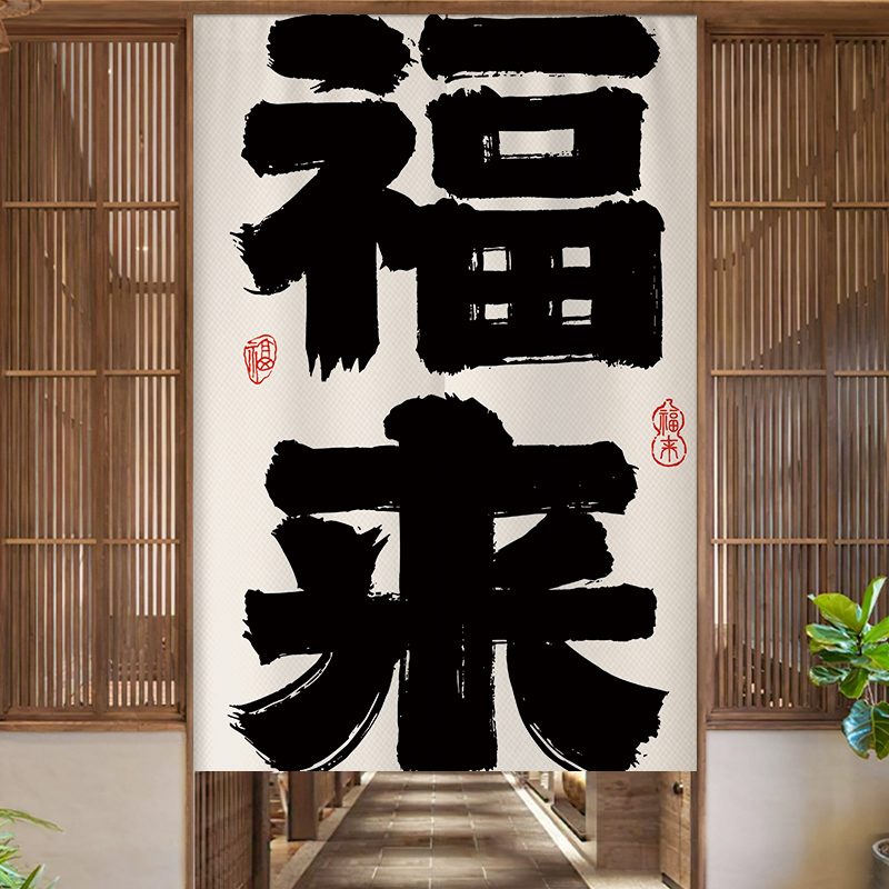 定制书法文字门帘半帘中式布艺隔断布帘厨房卫生间商用杂物遮挡帘