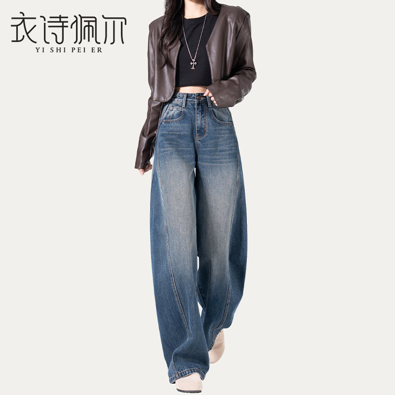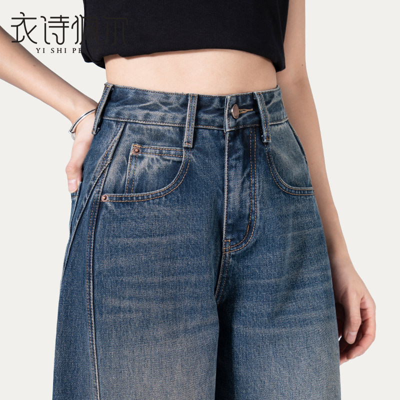 弯刀牛仔裤女2025年冬季新款高腰显瘦宽松百搭设计感露骨先镰刀裤