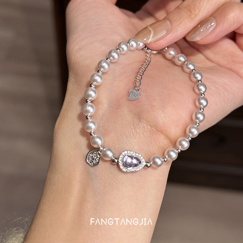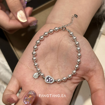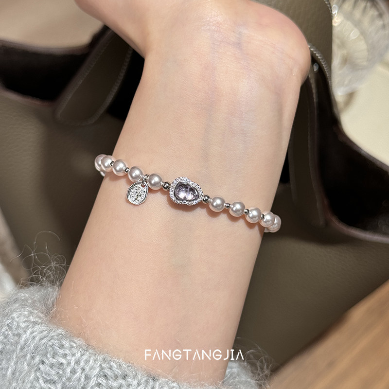 方糖家 天然紫水晶好运葫芦曼塔玫瑰珍珠纯银手链轻奢女款手串女