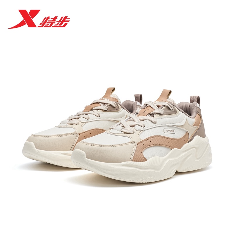 XTEP特步正品2024冬季新款老爹鞋网面革面运动鞋女鞋976418320013