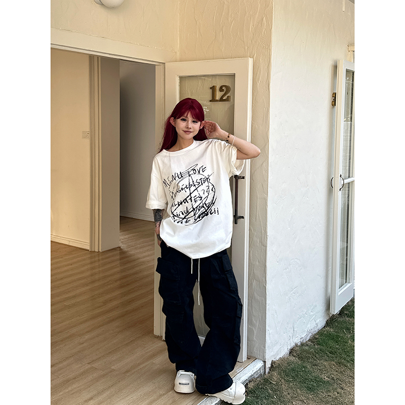 Sixminu小蚊子美式休闲宽松字母T恤女潮牌情侣男女短袖纯棉圆领t