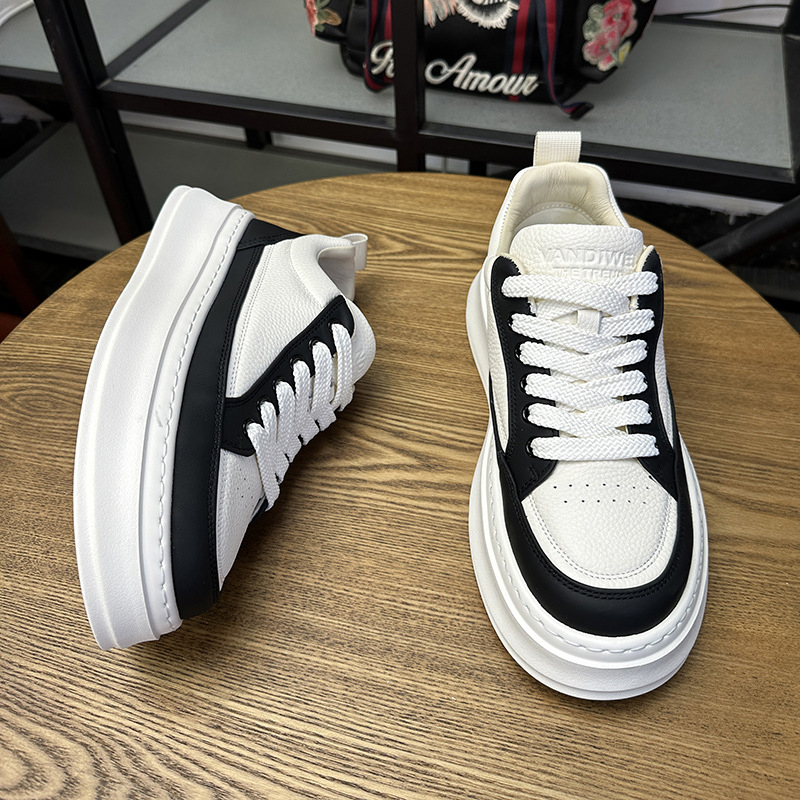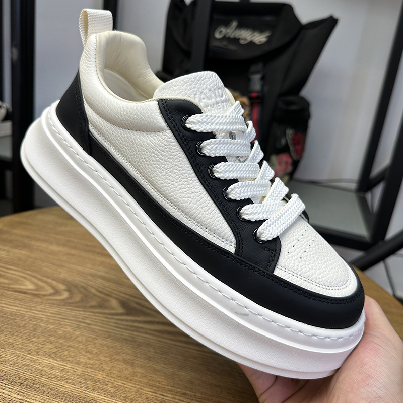 春季男鞋头层牛皮低帮运动休闲鞋厚底时尚透气板鞋网红潮流皮鞋子