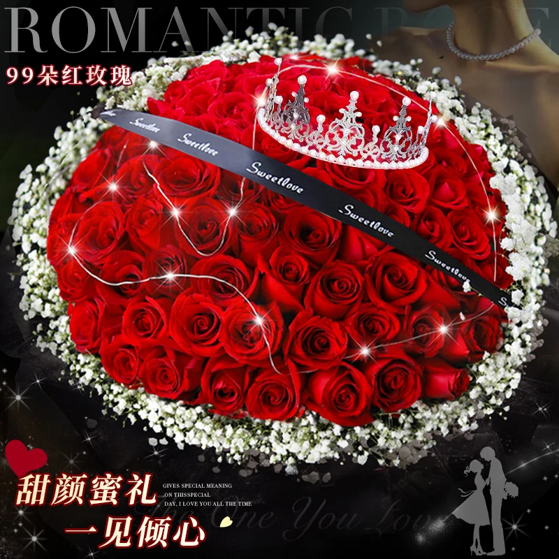 真鲜花99朵红玫瑰礼盒百合花束同城配送小时达送女友生日表白礼物