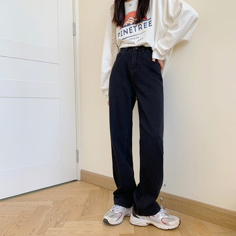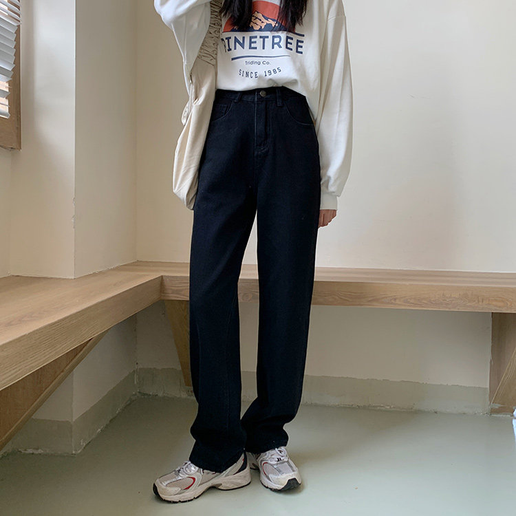 大码牛仔裤女秋冬加绒胖妹妹mm高腰宽松显瘦直筒长裤适合胯大腿粗