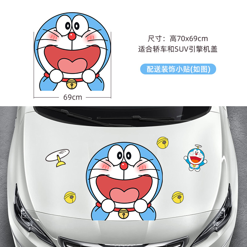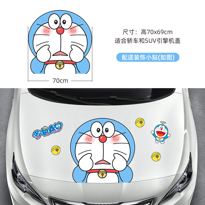 汽车机头盖贴纸哆啦a梦引擎盖拉花车头盖可爱机器猫装饰遮盖划痕