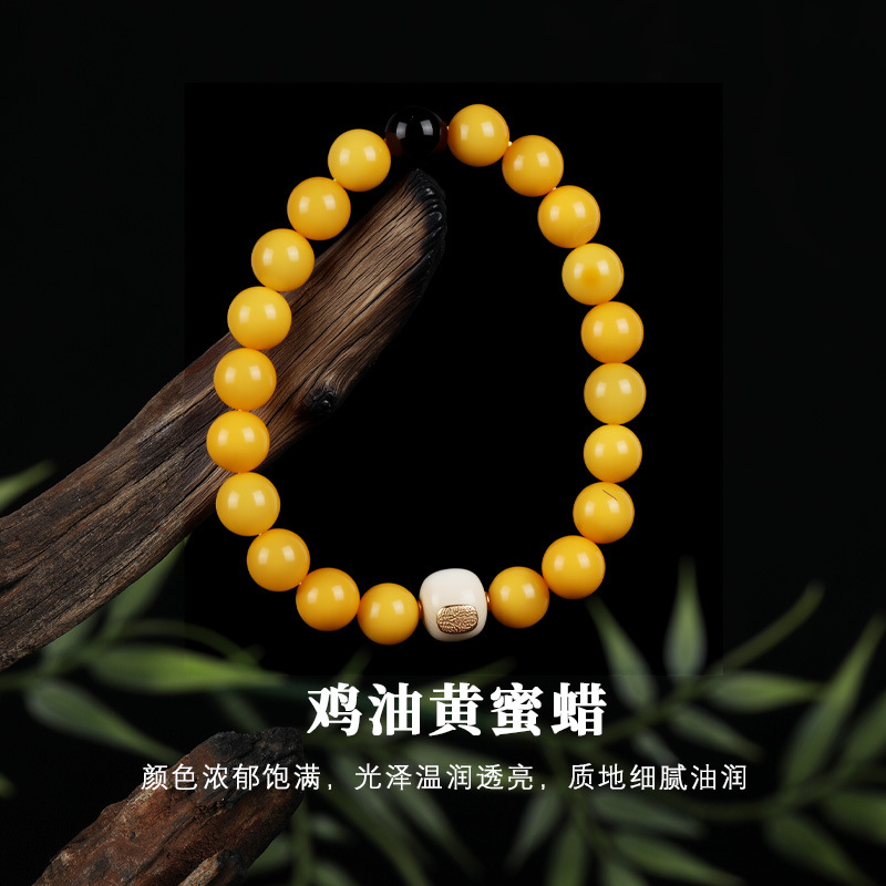 天然满蜜鸡油黄蜜蜡手串天然蜜蜡