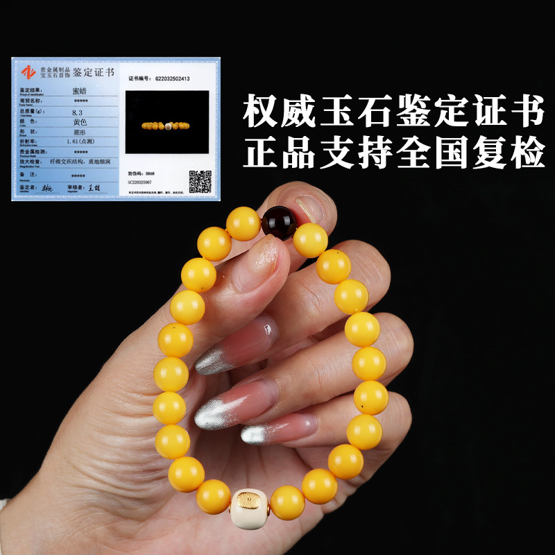 唐今玉原创天然满蜜鸡油黄蜜蜡手串天然蜜蜡高货保真设计款手串