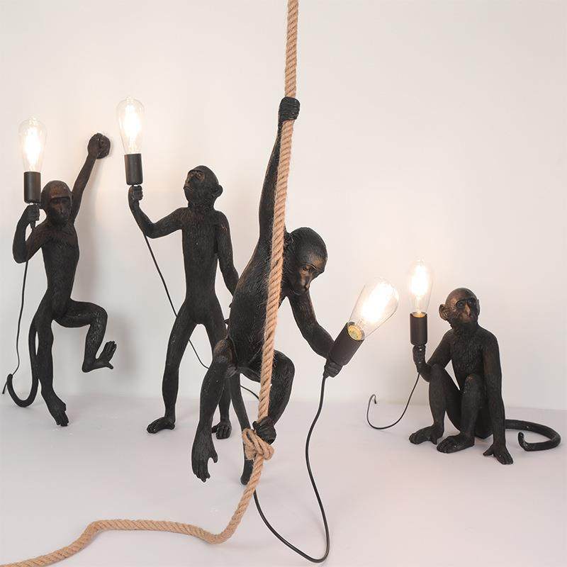 跨境创意猴子吊灯轻奢儿童房灯中古工业风动物树脂客厅民宿装饰灯