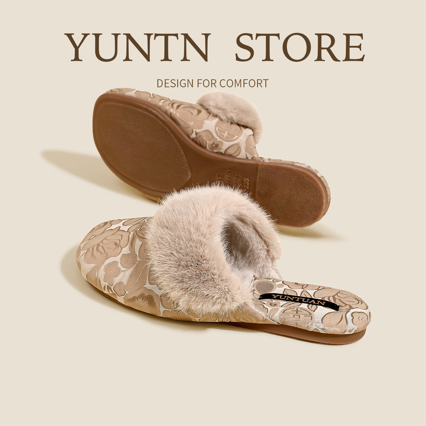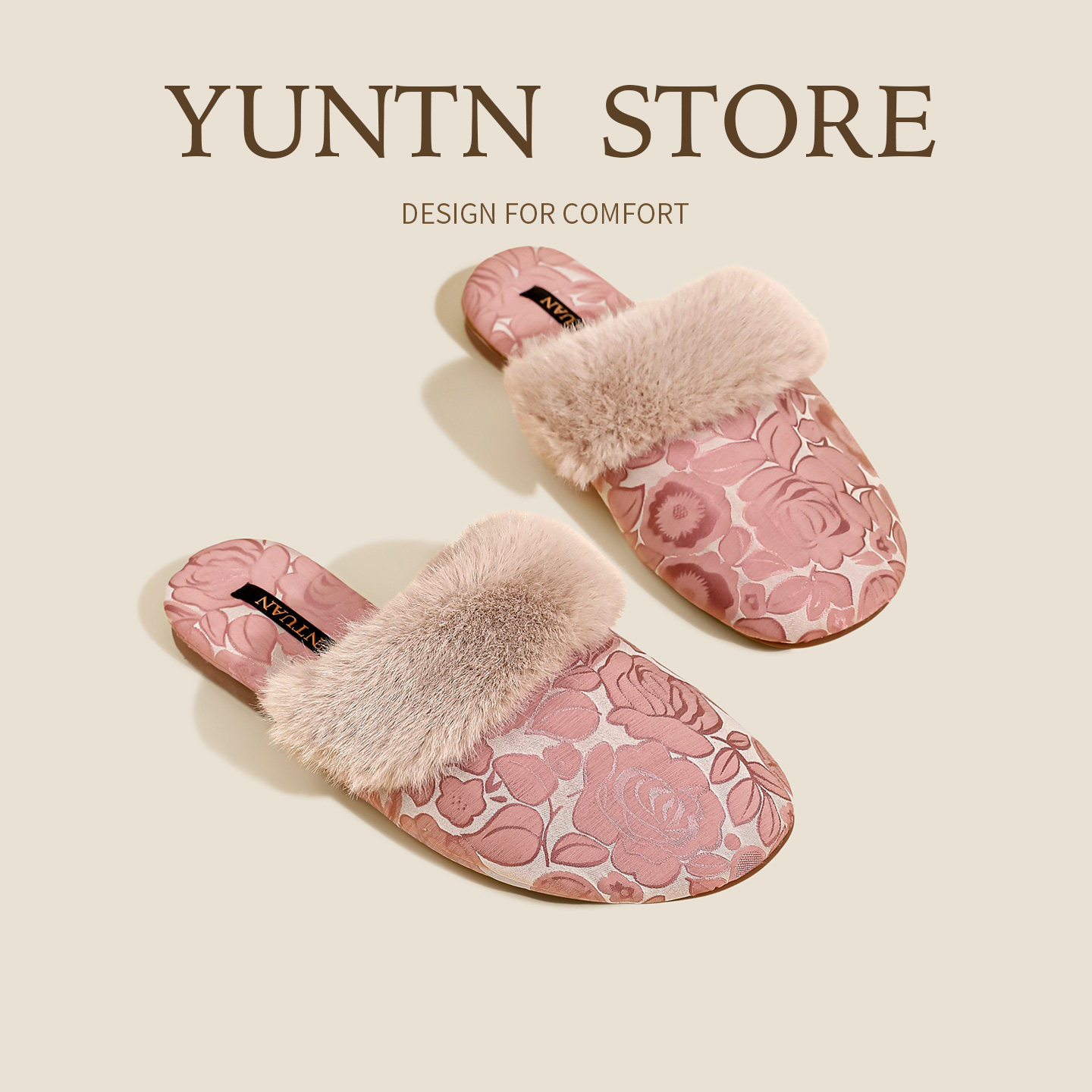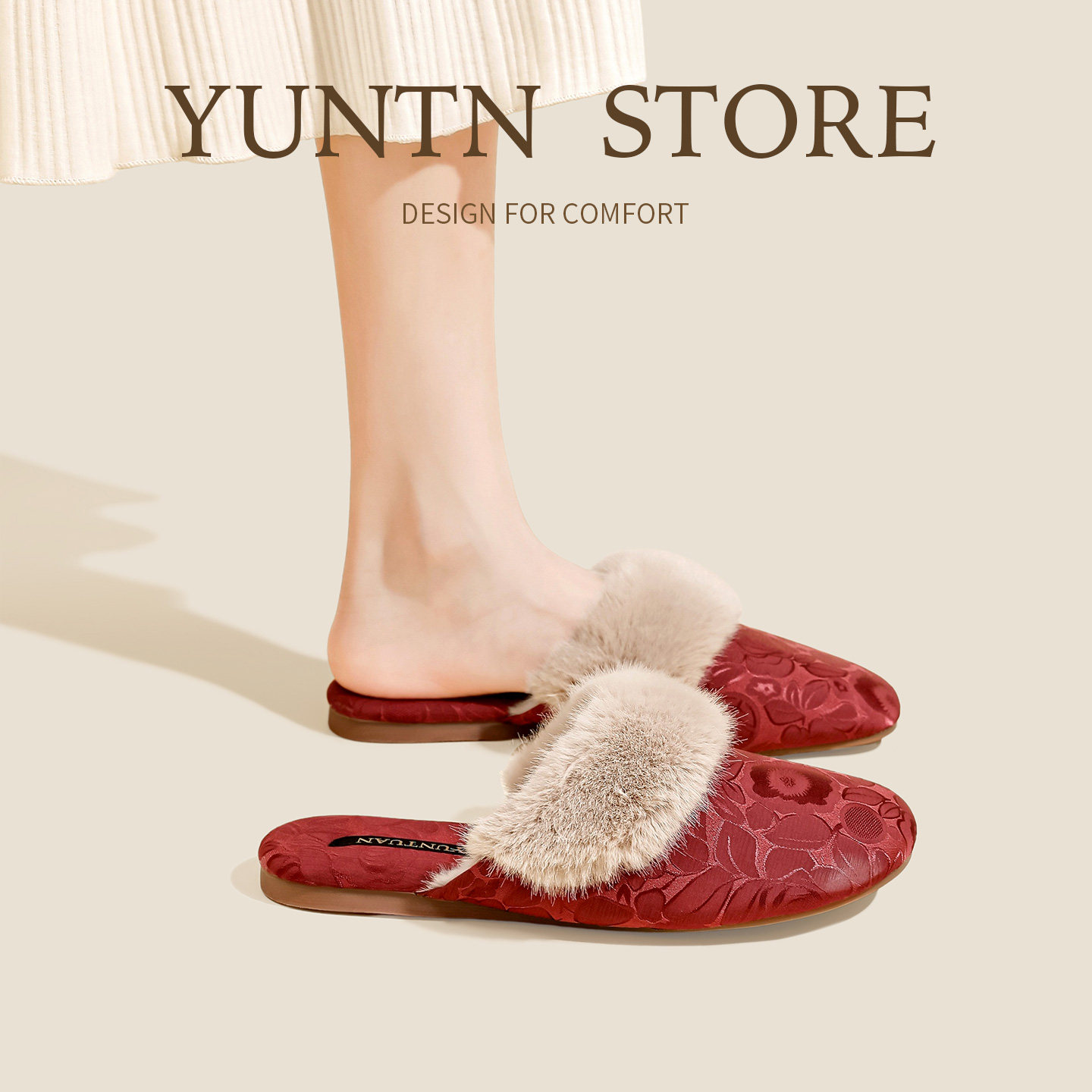 冬季加绒保暖新中式断码轻奢高级感毛绒棉拖鞋女防滑牛筋底居家用