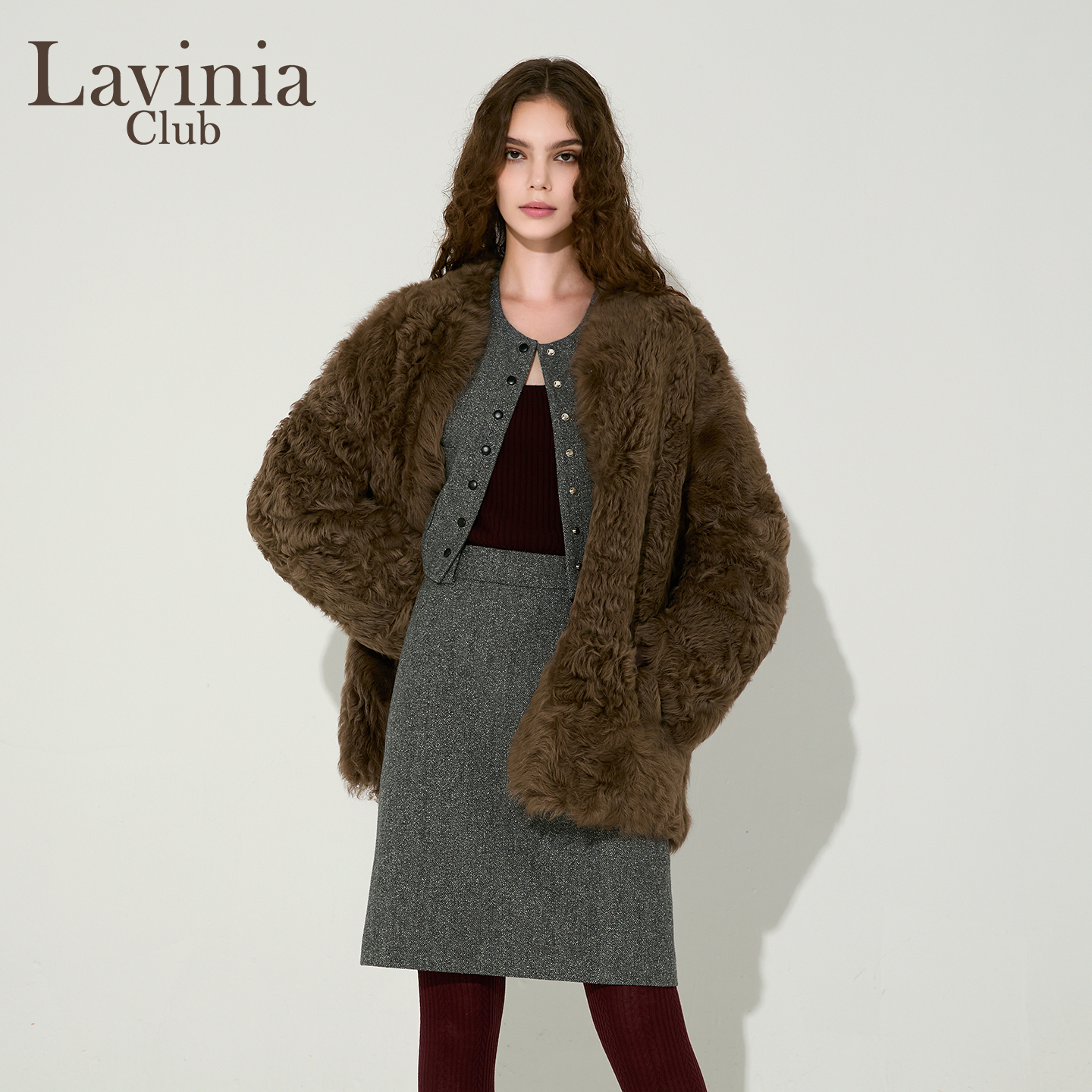 Lavinia2005秋新款格雷灰气质通勤羊毛混纺毛呢半身裙女直筒包臀