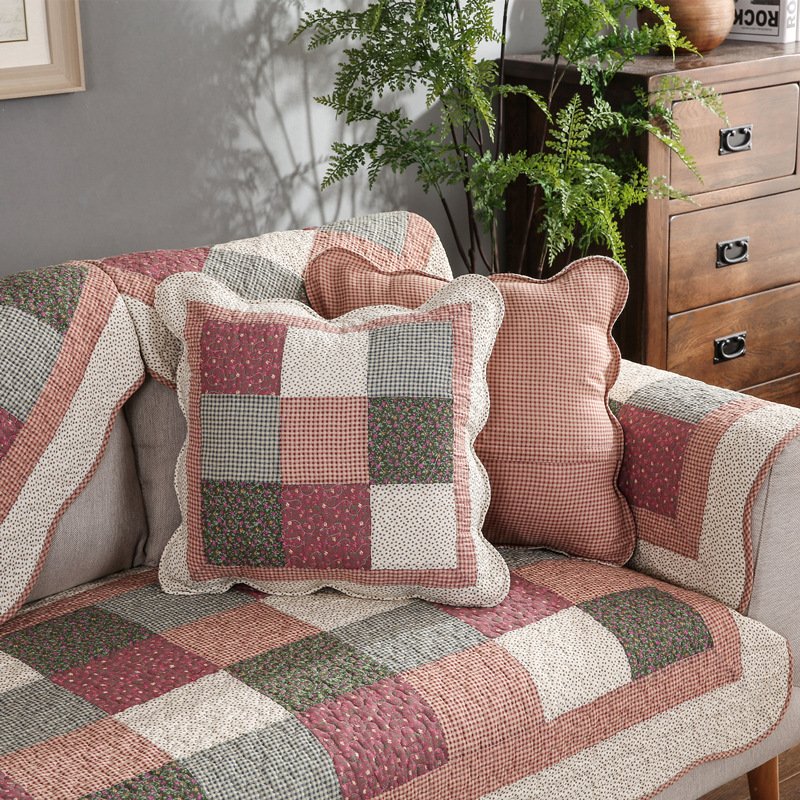 全棉水洗纯手工拼块绗缝沙发垫 布艺沙发巾防滑坐垫地垫厂家