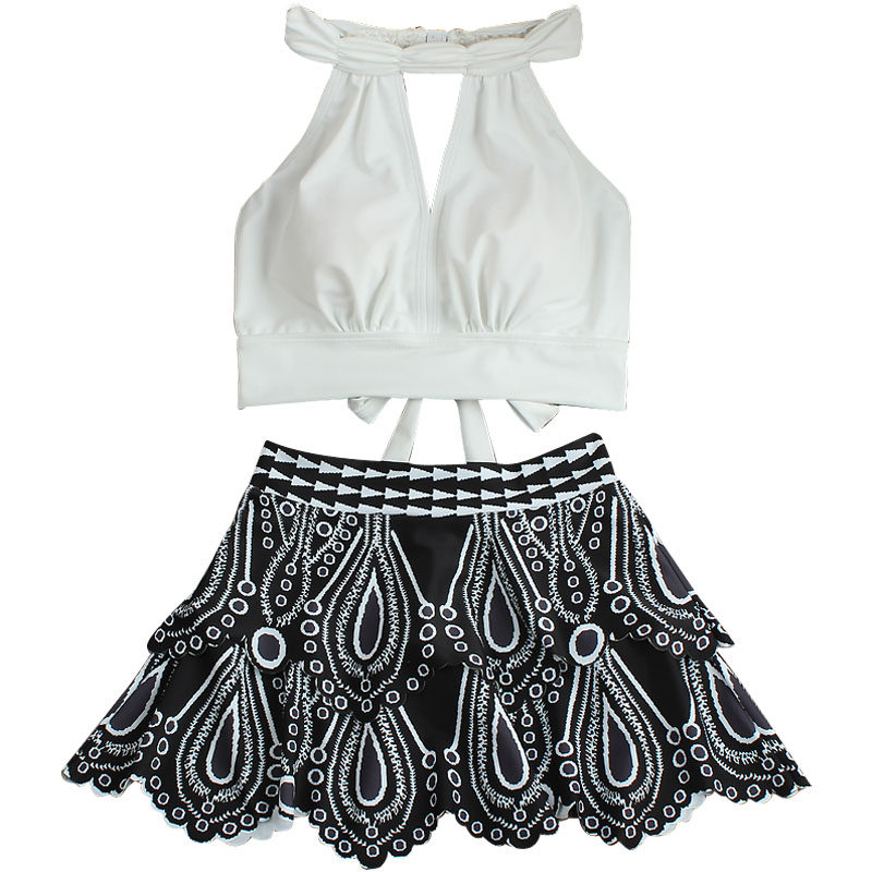 夏季新款韩国ins性感裙式分体泳衣女三件套保守显瘦遮肚海边泳装
